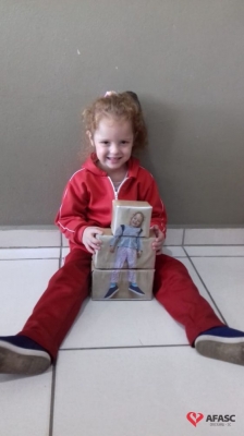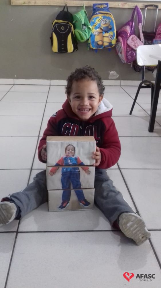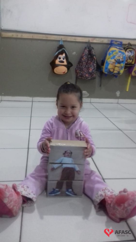 Demonstrar empatia pelo outro percebendo que as pessoas são diferentes na sua aparência e no sentimento. Esse foi o objetivo da atividade “Quebra Cabeça Gigante”, que foi desenvolvida pela professora do Grupo IV B do Centro de Educação Infantil (CEI) da Associação Feminina de Assistência Social de Criciúma (Afasc) Pingo de Gente, Aparecida Luz. O Exercício faz parte do projeto “Contos, como unir o útil ao imaginário”.