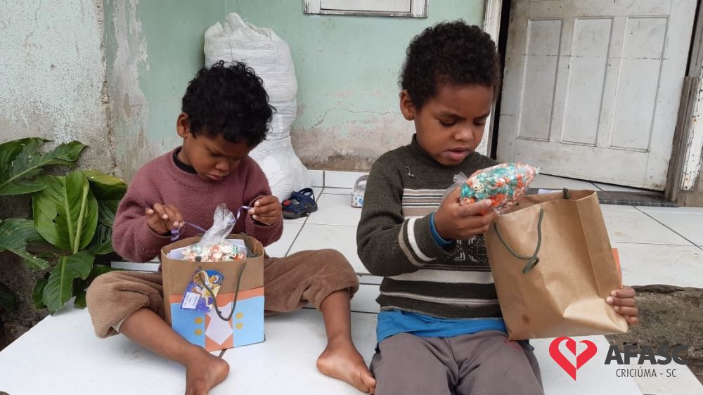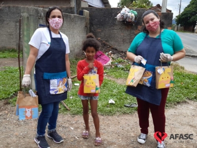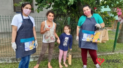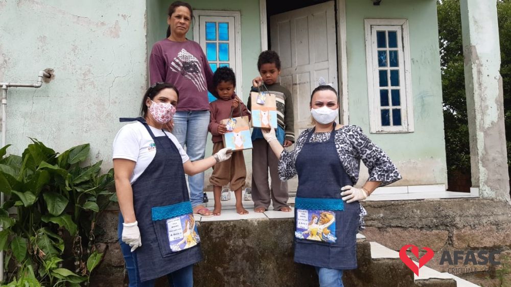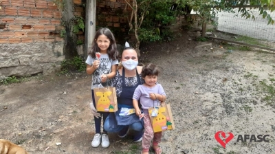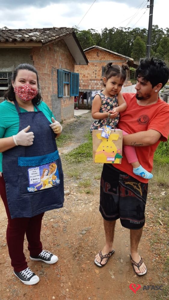 Com o objetivo de estimular a leitura em família e a imaginação das crianças, a equipe do Serviço de Convivência da Associação Feminina de Assistência Social de Criciúma (Afasc) Vila Miguel, esteve na casa das crianças que participam das oficinas do espaço, realizando a entrega da bolsinha de materiais da história “A Bela e a Fera”, por meio do projeto “Era uma vez”.