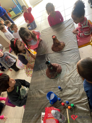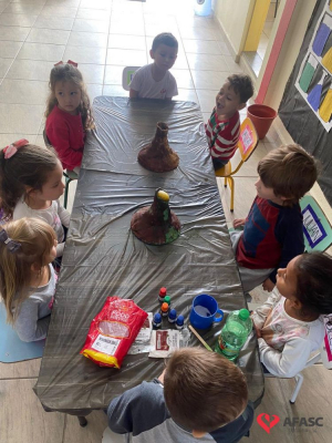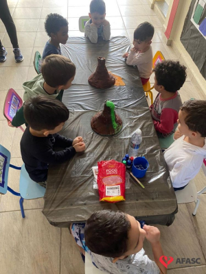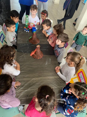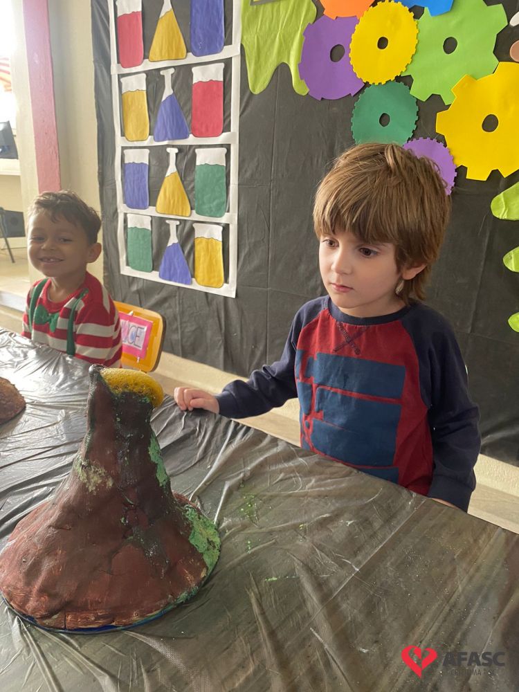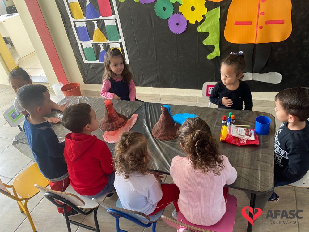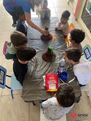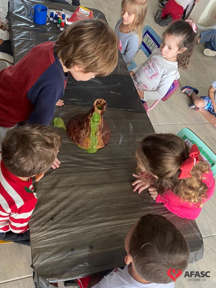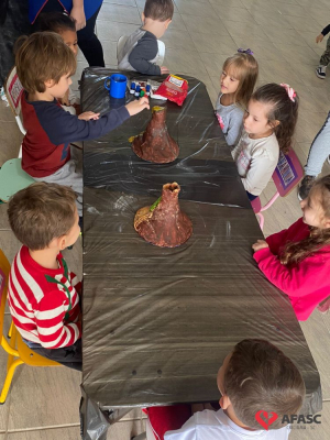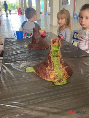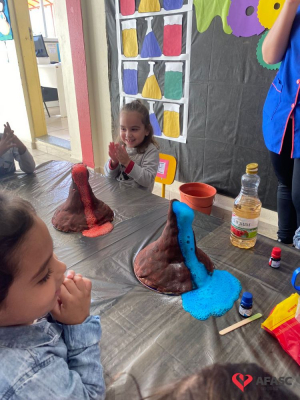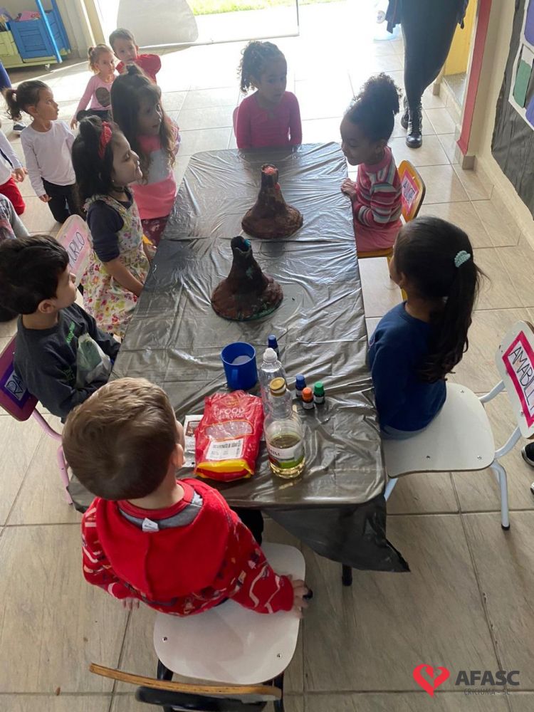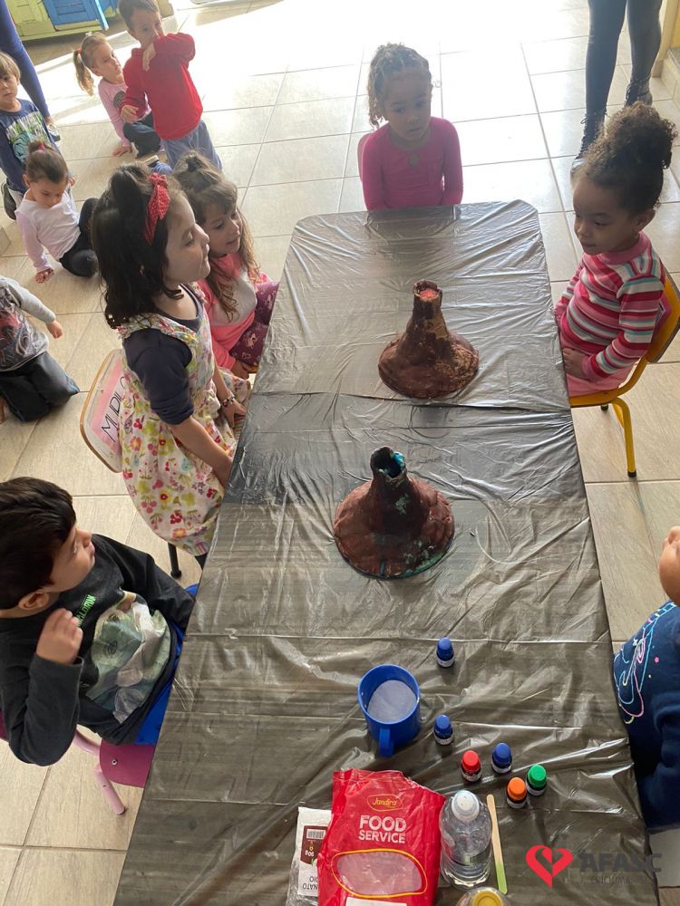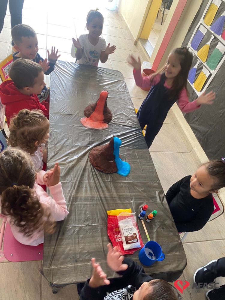 Em todas as crianças, independente de idade, as brincadeiras realizadas na escola ou em casa, tem o mesmo efeito: elas simplesmente amam. Pensando nisso, as professoras dos Grupos 4 do CEI Afasc Branca de Neve, Mariele Francisco, Xandara Lima, Maria Joana Barbosa, Karen Fortunato, Andressa Simão e Maria Ines Claudino, desenvolveram a atividade “Vulcão das cores”, onde por meio de experiências, as crianças entenderam sobre erupção e aprenderam como são feitas as cores.