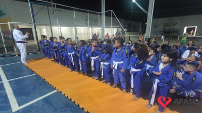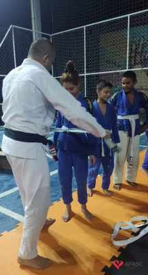 A oficina de jiu jitsu da Estação Cidadania, que tem como instrutor Philip Pereira, tem proporcionado momentos de muita alegria para crianças e adolescentes que frequentam a atividade. O último festejo dos atletas foi o recebimento das novas graduações, que contou com a participação de amigos e familiares.