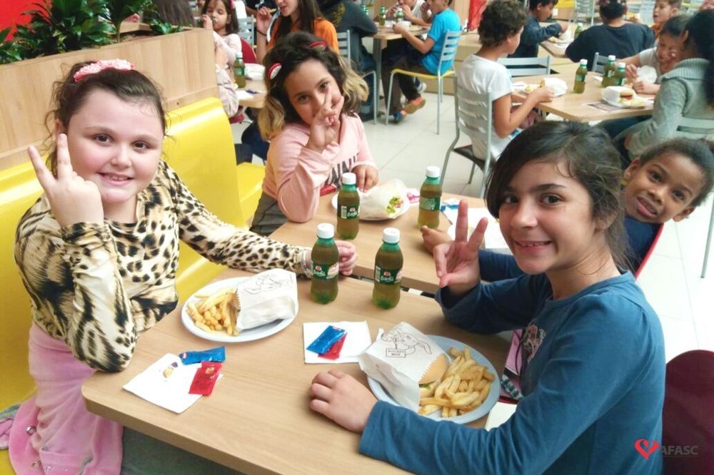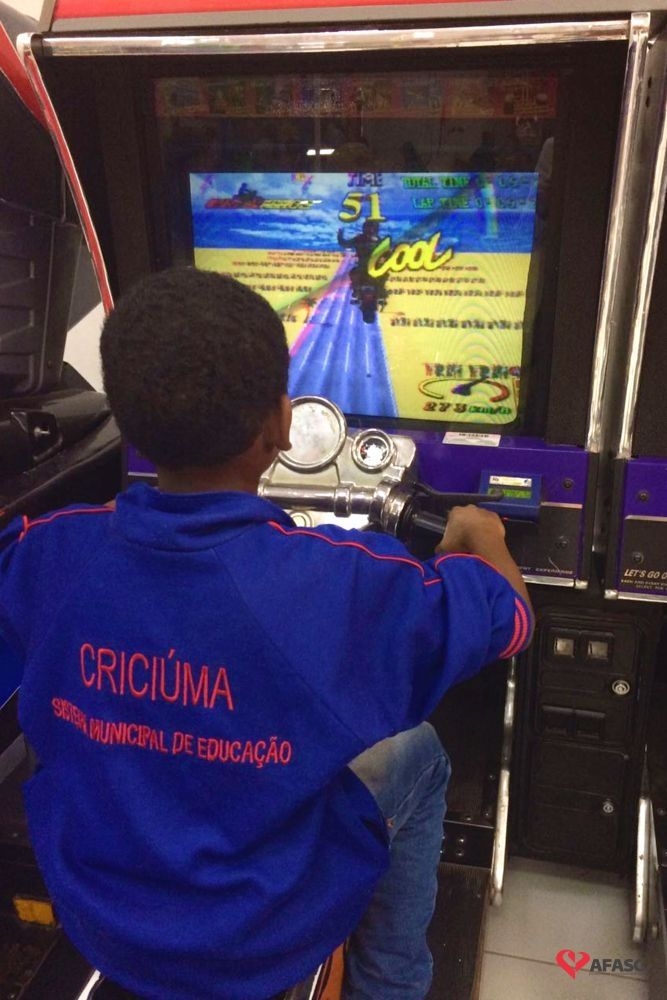 É praticamente impossível encontrar alguma criança ou adolescente que não fique fascinado com tantas opções de diversão diferentes quando visita um espaço como a Art & Play, no Criciúma Shopping. E se, depois das brincadeiras, vier um lanche especial do Mr. Burguer, com direito a hambúrguer, batatas fritas e refrigerante, tudo fica ainda melhor. Um momento como esse, no entanto, não é apenas lazer, mas uma oportunidade de integração. Por isso, nessa terça-feira (13), as 40 crianças e adolescentes que frequentam o Serviço de Convivência e Fortalecimento de Vínculos (SCFV), mantido pela Associação Feminina de Assistência Social de Criciúma (Afasc), junto ao Centro de Referência em Assistência Social (Cras) do bairro Próspera, tiveram um dia que ficará na memória por muito tempo.
