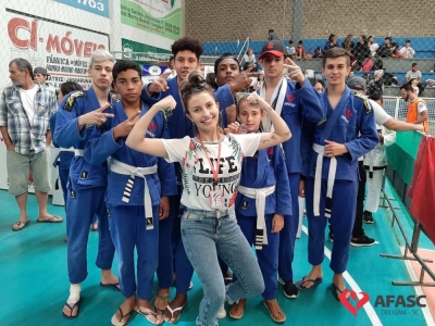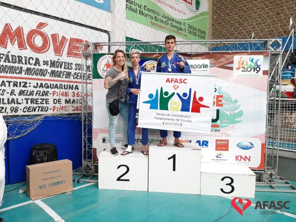 Crianças e adolescentes que participam das oficinas de jiu jitsu realizadas nos Serviços de Convivência e Fortalecimento de Vínculos (SCFV) da Associação Feminina de Assistência Social de Criciúma (Afasc) nos Centros de Referência da Assistência Social (CRAS) Cristo Redentor e Vila Miguel, e no Centro de Convivência Vida Nova, participaram no último domingo (20), da IVª etapa do Circuito Catarinense de Jiu Jitsu promovido pela Federação Catarinense de Jiu Jitsu (FCJJ), na cidade de Jaguaruna.