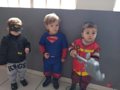 Crianças vão vestidas de fantasias para cumprir tarefa de gincana no CEI Afasc Santo Antonio