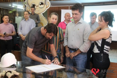 O novo Centro de Convivência da Terceira Idade (CCTI) está mais próximo. A ordem de serviço, que dá início as obras do espaço, foi assinada nessa quinta-feira (12), na atual sede do CCTI, localizada no Morro Cechinel. Atualmente, são 680 idosos que participam das oficinas ofertadas pelo CCTI e mais 1,4 mil que frequentam os 58 grupos dos bairros.