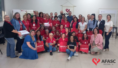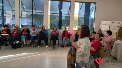 As 31 monitoras dos 142 clubes de mães da Associação Feminina de Assistência Social de Criciúma (AFASC) participaram, durante a semana, de capacitação. A formação continuada preparatória para o segundo semestre envolveu palestras e workshop sobre primeiros socorros, orientações sobre serviço social, crochê filé e acabamentos para tricô.