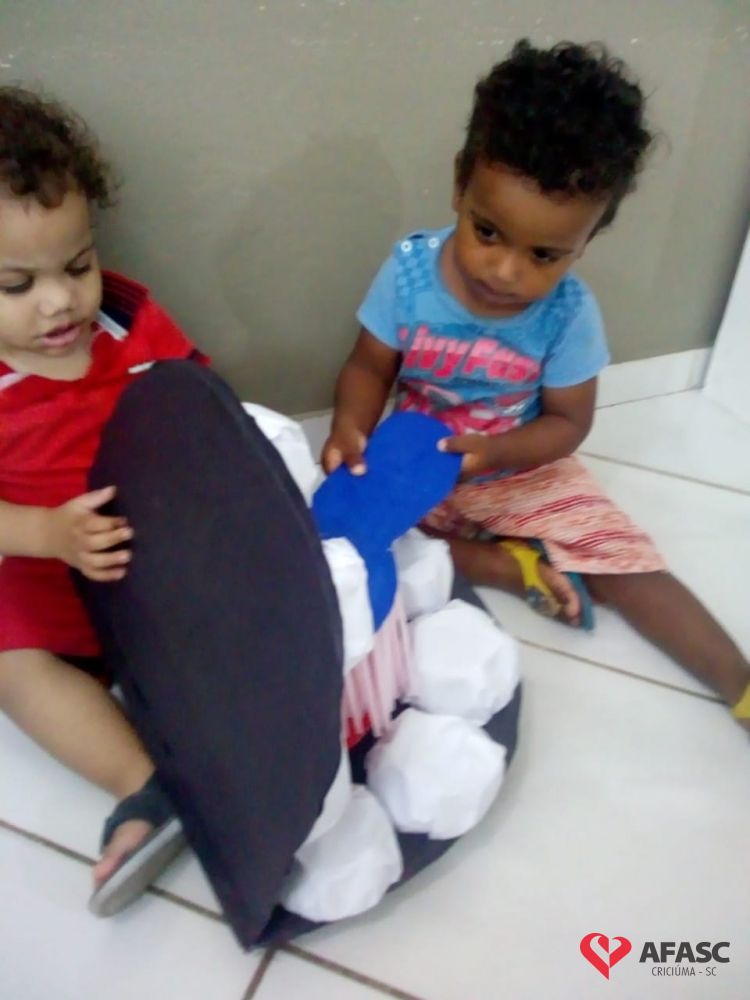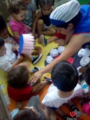 Com o intuito de conscientizar as crianças dos Grupos II A e B do Centro de Educação Infantil (CEI) da Associação Feminina de Assistência Social de Criciúma (Afasc) Pingo de Gente sobre a importância da prática constante da higiene bucal, as professoras Andréia Queiros, Tais Xavier e Thuane de Jesus realizaram a atividade “Como escovar meu dente”, onde com o auxílio das educadoras os pequenos confeccionaram a boca e a escova de dente, que foi o material utilizado para melhor entendimento da atividade.
