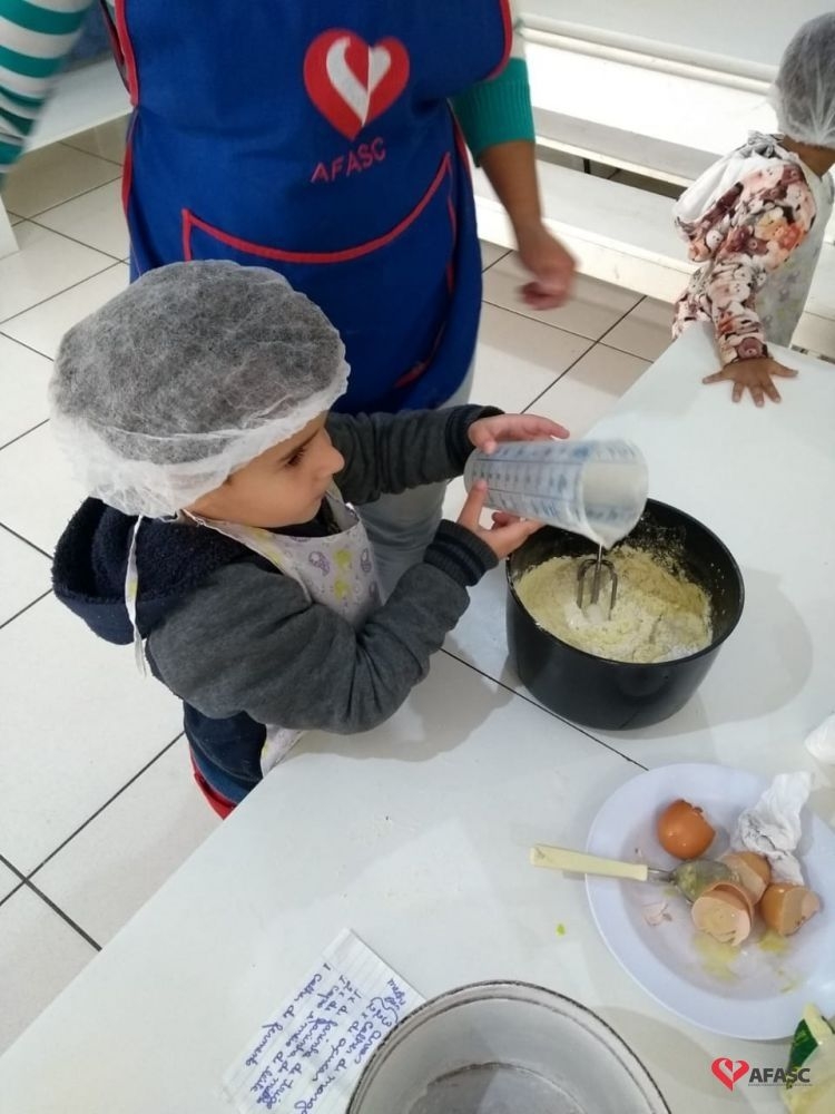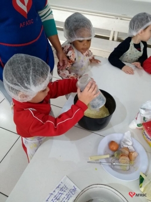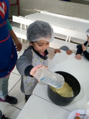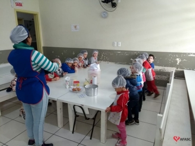 No mês de junho, iniciam as comemorações das Festas Juninas. Neste período, Centros de Educação Infantil (CEI) da Associação Feminina de Assistência Social de Criciúma (Afasc) ficam enfeitados, confeccionam convites, ensaiam quadrilhas e danças típicas, além da comida, que faz a alegria de toda criançada. Essa também é uma época, em que as educadoras realizam diversas atividades interdisciplinares e ampliam o universo linguístico, pois está é uma temática rica. Pensando em ampliar esse universo, as professoras do Grupo 3 B do CEI Afasc Pingo de Gente, Flavia Mendes e Bruna de Aguiar, trouxeram para a sala de aula a atividade “Comidas típicas de festa junina”.