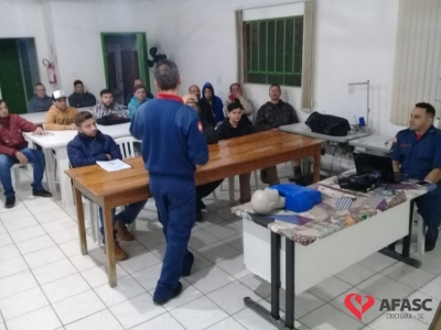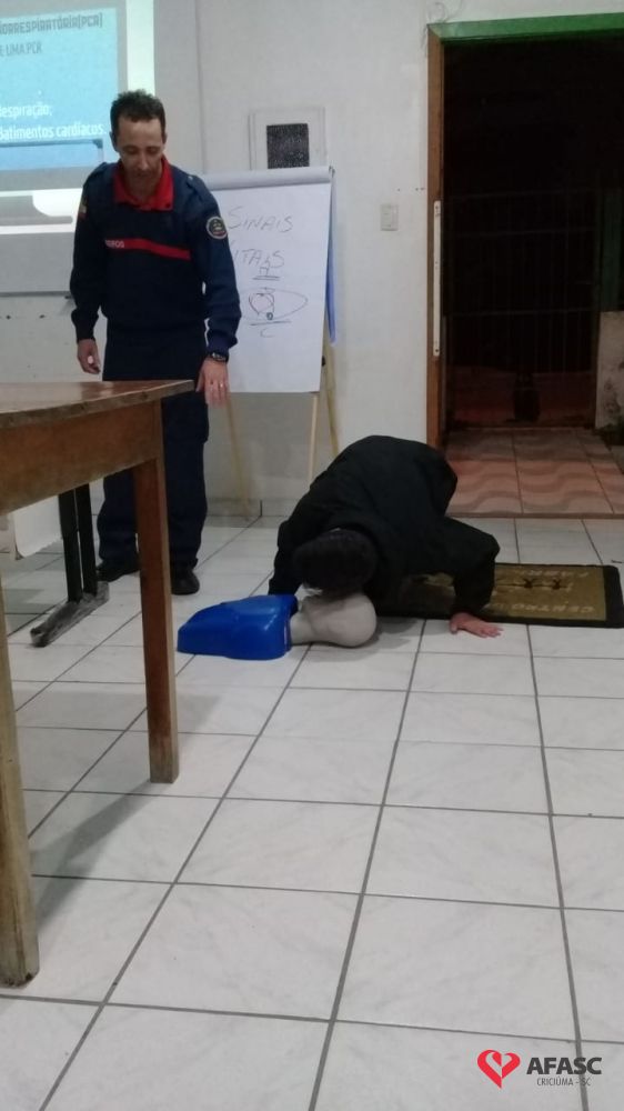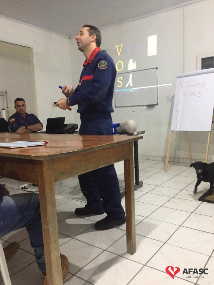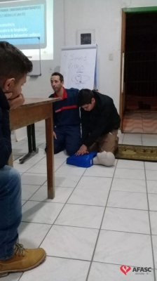 Os alunos do curso de elétrica predial, que está sendo promovido pela Associação Feminina de Assistência Social de Criciúma, por meio da Afasc Solidária, em parceria com a empresa Sul Formação Profissional (SULFORP), participaram de uma capacitação sobre “Primeiros Socorros” com o cabo Vitorino e o soldado Dal Bó, bombeiros militares que atuam no 4° Batalhão do Corpo de Bombeiros, na cidade de Criciúma.