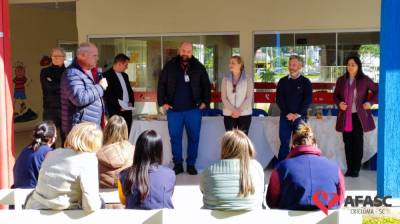 O lançamento do projeto contou com a participação do secretário municipal da Saúde, Arleu da Silveira, do representante da Juner Joalheiro, Flávio Spillere e da presidente de honra da Afasc, Adriana Salvaro.