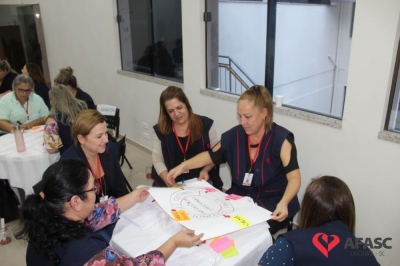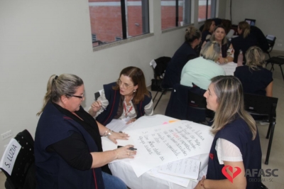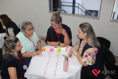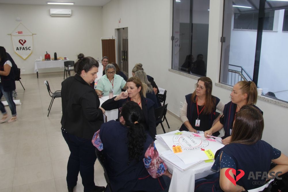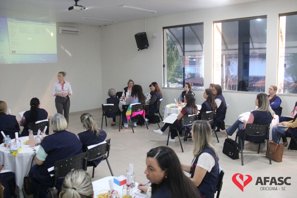 O Departamento de Educação Infantil (DEI) da Associação Feminina de Assistência Social de Criciúma (Afasc) realizou nesta quinta-feira (8) uma reunião administrativa com as diretoras dos 32 Centros de Educação Infantil (CEI) da instituição. Durante o encontro, as colaboradores tiraram duvidas com o diretor executivo, Adriano Boaroli, a equipe do departamento, a coordenadora de Recursos Humanos, Marília Mendes, a responsável pelo setor Jurídico, Tainá Pagani e a Comunicação, além de conhecer novos projetos que farão parte do segundo semestre nos CEI’s.