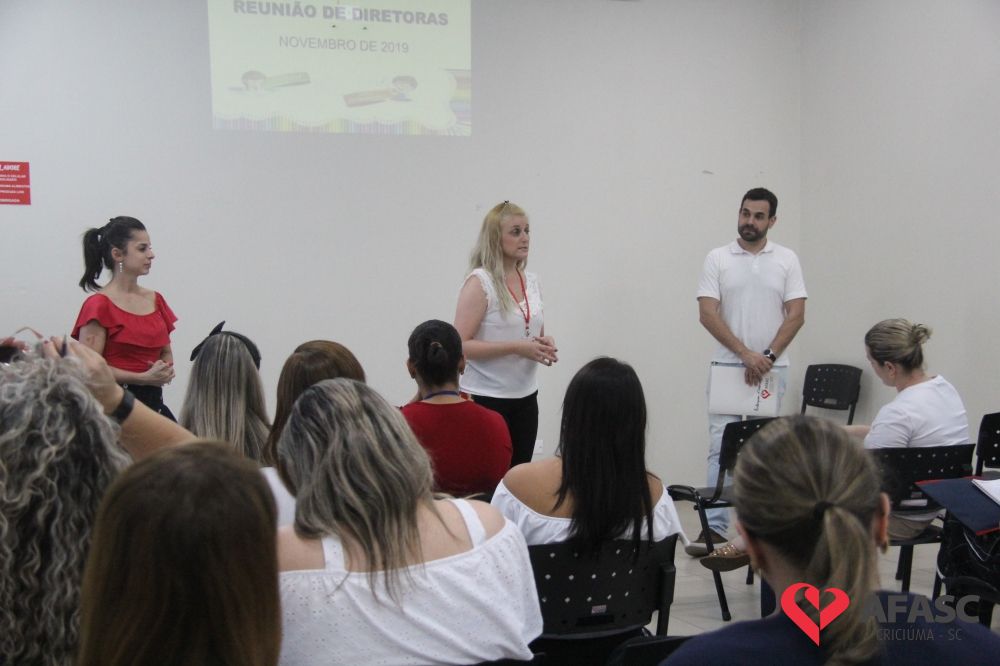 A coordenação do Departamento de Educação Infantil (DEI) da Associação Feminina de Assistência Social de Criciúma (Afasc) reuniu na tarde desta sexta-feira (22), as diretoras dos 32 Centros de Educação Infantil (CEI) da instituição para fazer balanço das atividades realizadas durante o ano de 2019 e planejar as ações para o encerramento do ano letivo nas creches.