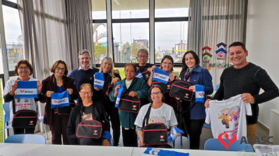 Além da bolsa, os idosos receberam das mãos da presidente de honra, Adriana Salvaro e do diretor executivo, Adriano Boaroli, uma camiseta e uma toalha, que completaram o kit CCTI, produzido pela associação.