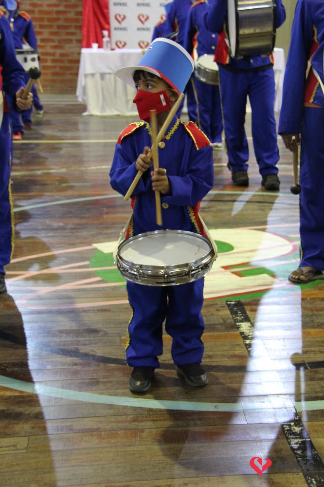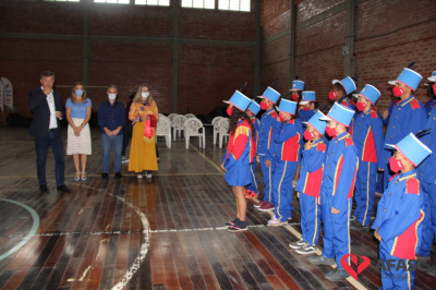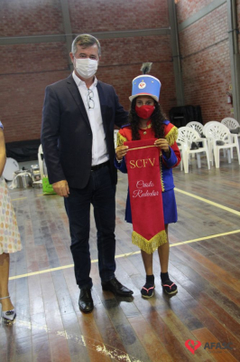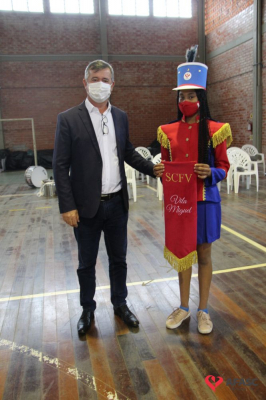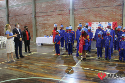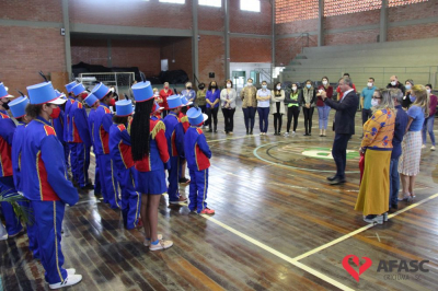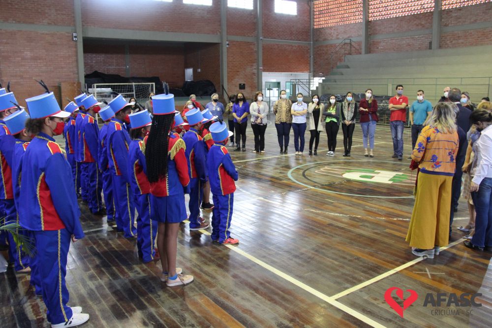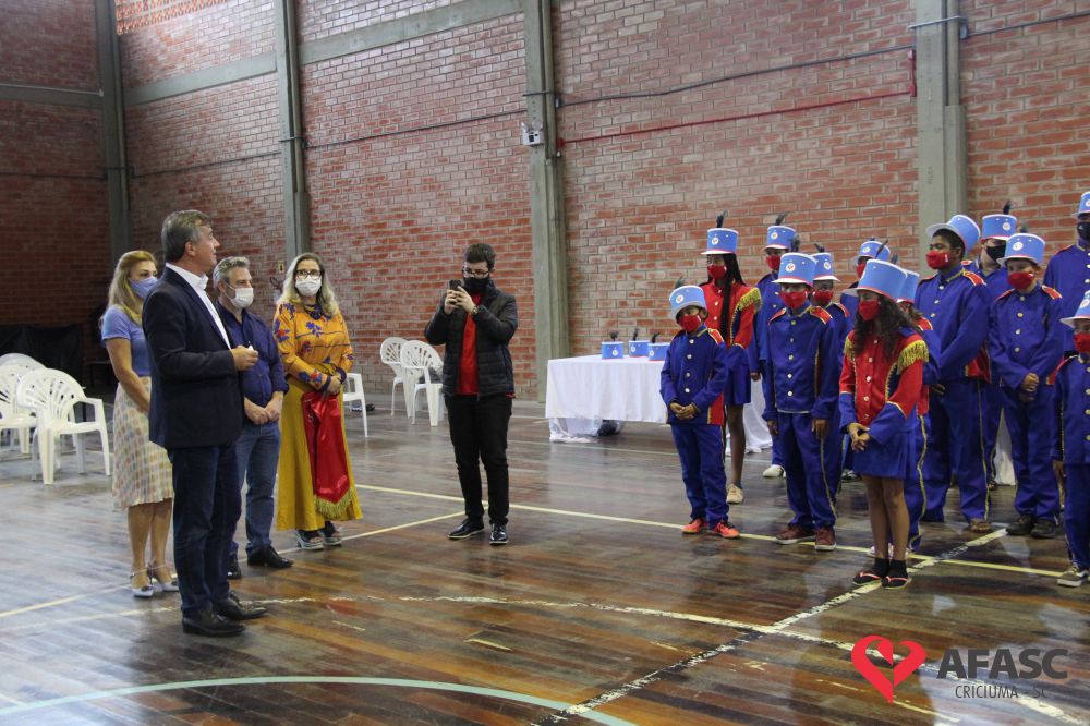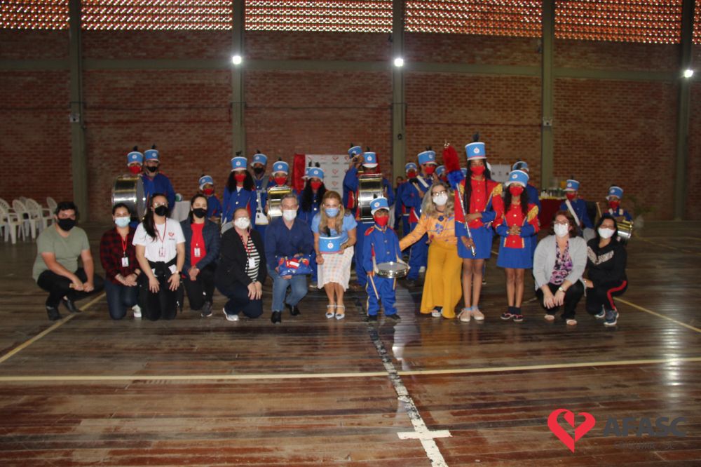 A tarde desta segunda-feira (6), foi muito especial para os participantes da Fanfarra Afasc SCFV. Crianças e adolescentes foram recebidos no ginásio da entidade onde receberam das mãos do prefeito interino, Ricardo Fabris, do diretor executivo, Adriano Boaroli, da presidente do Conselho Administrativo, Robinalva Ferreira, e da coordenadora do Serviço de Convivência de zero a 17 anos, Gladis Salvalaio, os uniformes da banda. Ao todo foram entregues 28 fardamentos.