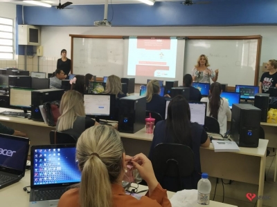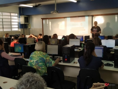 Modernizar as atividades realizadas nos Centros de Educação Infantil (CEI) da Associação Feminina de Assistência Social de Criciúma (Afasc), não é sinônimo apenas de modernizar o ensino. Pensando desta forma o Departamento de Educação Infantil (DEI) realizou nesta terça-feira (18), no Laboratório de Informática I, das Faculdades Esucri, o 4 º encontro do projeto AprimorAção. O encontro que é organizado pela psicóloga do DEI, Clarivia Possamai, teve como tema “Uso da tecnologia para meios informativos”, e foi ministrado pelas orientadoras pedagógicas do departamento Carla Menezes e Kamila Prudêncio.