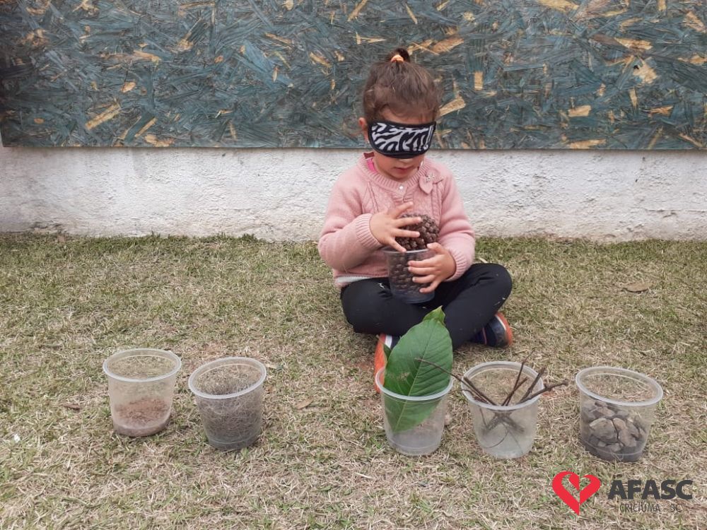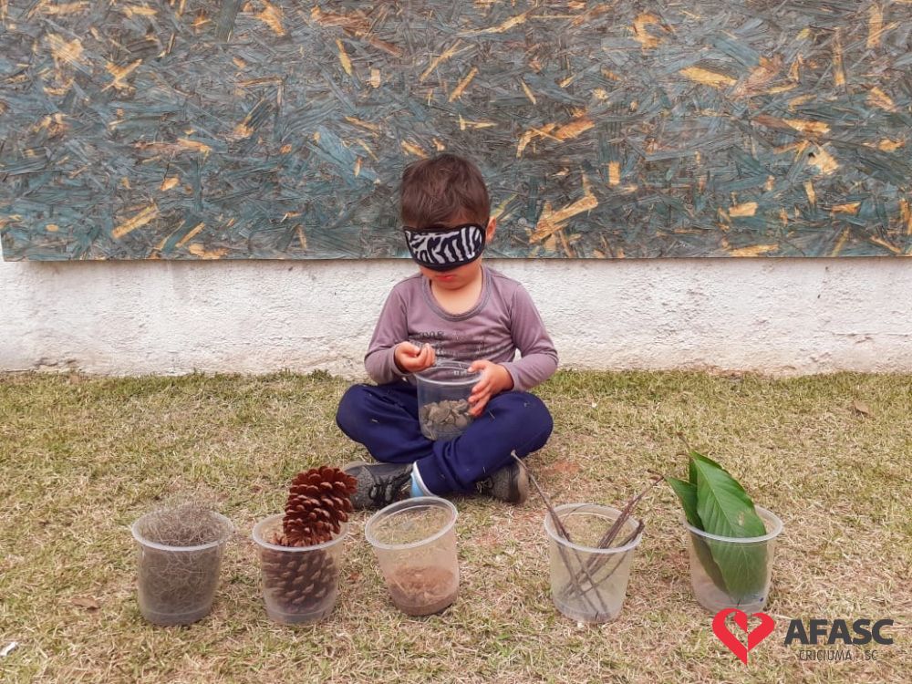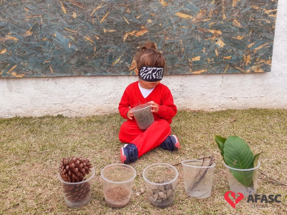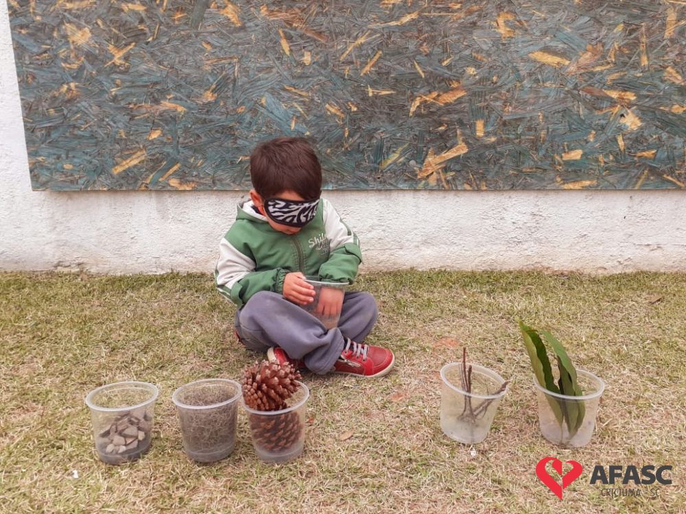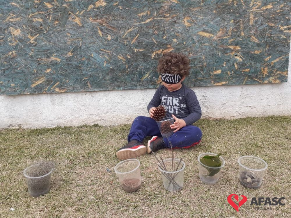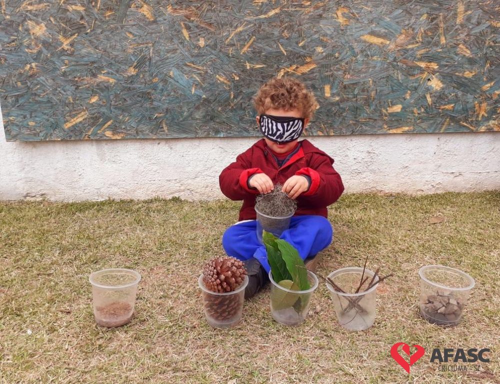 Uma atividade atrativa e divertida, onde as crianças do Grupo Misto III e IV do Centro de Educação Infantil (CEI) da Associação Feminina de Assistência Social de Criciúma (Afasc) Benevenuto Guidi puderam explorar e experimentar experiências sensoriais usando elementos da natureza como recurso. Assim foi o desenvolvimento da atividade “Estimulando o tato com elementos da natureza”, desenvolvida pelas professoras Ana Carolina da Soler e Michele Wenceslau.