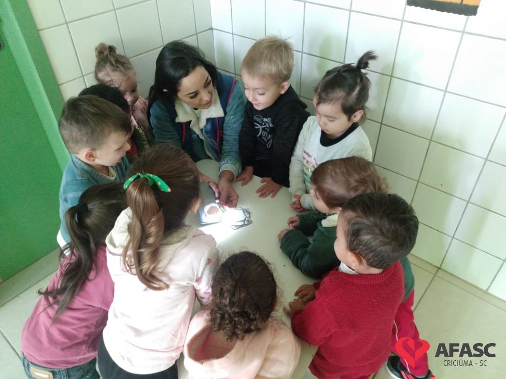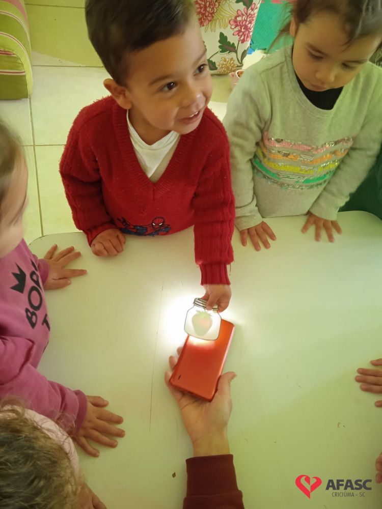 A mundo da imaginação, exploração e observação tem feito parte do dia a dia das crianças do CEI Afasc Umberto Cesa. Crianças, professoras e famílias estão desenvolvendo juntas o projeto macro “Brincar, experimentar e investigar os elementos naturais”. Os planejamentos diários têm promovido o desenvolvimento da oralidade, imaginação, pensamento, habilidades motoras e cognitivas, proporcionando momentos de interação com os colegas.