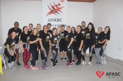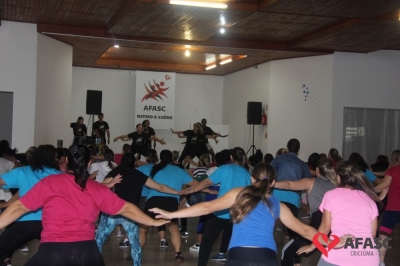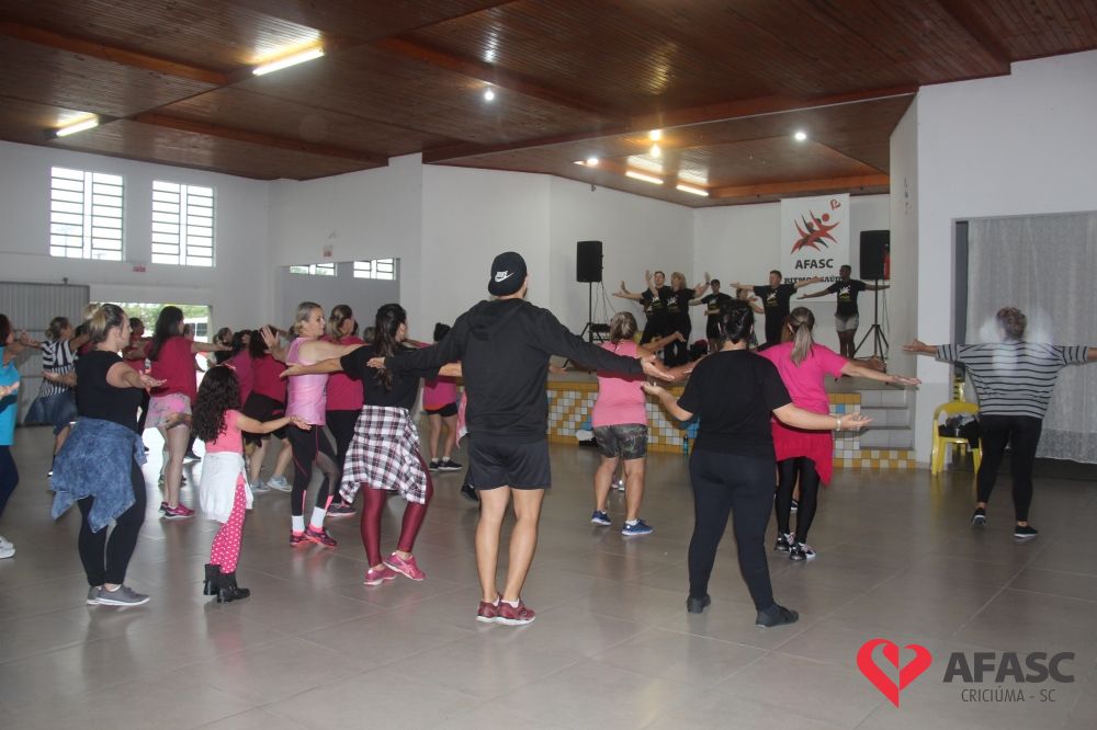 Aproximadamente 130 pessoas compareceram na tarde do último sábado (5) no Encontro Regional do bairro Quarta Linha, realizado pela Associação Feminina de Assistência Social (Afasc), por meio do departamento do Ritmo e Saúde. Participantes de diversas regiões estiveram no evento que contou com um misto de musicalidade, ritmos, coreografias fáceis e muita alegria.