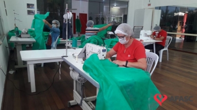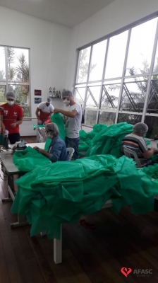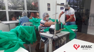 Na manhã desta segunda-feira (6), a Associação Feminina de Assistência Social de Criciúma (Afasc), iniciou mais uma etapa no apoio para a contenção de contaminação do coronavírus (Covid-19). A equipe do Centro de Convivência da Terceira Idade e Clube de Mães da entidade, em parceria com empresas de confecção da região, estão trabalhando na confecção de jalecos para os profissionais da área de Saúde e máscaras para os trabalhadores da Prefeitura Municipal, que estão voltando gradativamente a suas atividades. Toda ação está sendo acompanhada pela primeira-dama, Adriana Salvaro e pela vice-dama, Robinalva Ferreira.