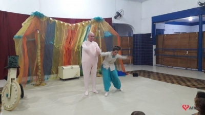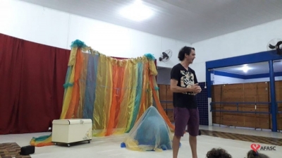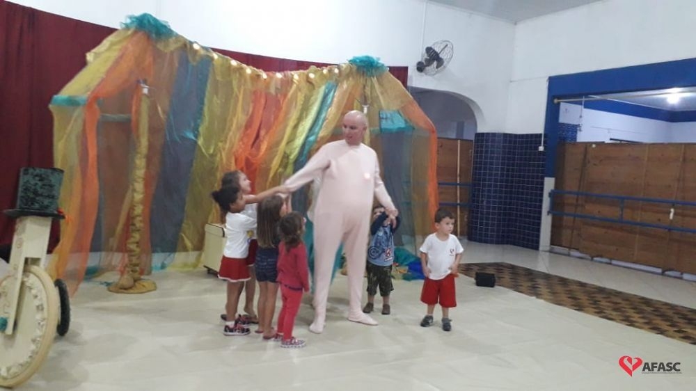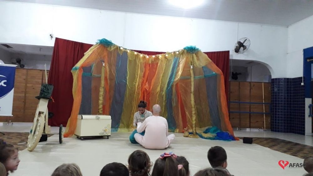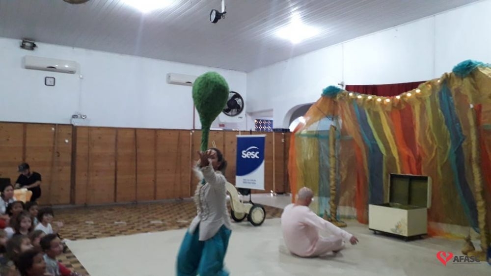 O Circuito SESC de contação de história chegou ao Centro de Educação Infantil (CEI) da Associação Feminina de Assistência Social de Criciúma (Afasc) Centro Social Urbano. As crianças dos Grupos 3, 4 e 5 assistiram ao espetáculo “Leve”, com a Trupee Teatro Um e Dois, formada pelos atores Danika Barreto e Antonio Rozeng, sob a direção do ator Reveraldo Joaquim. A peça teatral que levou muita diversão para os pequenos, conta com muita leveza, a relação de uma criança, que ao ganhar um presente, descobre um mundo de possibilidades onde tudo se transforma.
