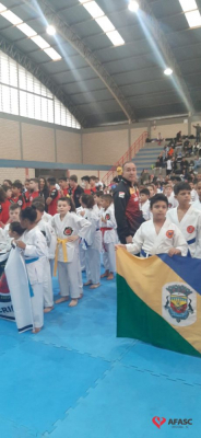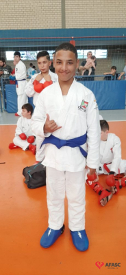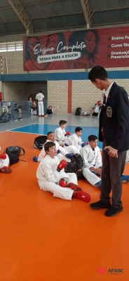 Os participantes da oficina de karatê da Estação Cidadania, tiveram um sábado (9) cheio de muito suor e alegria. A Federação Catarinense de Karatê (FCK) realizou no ginásio da Associação da Esucri a 3ª etapa do campeonato Estadual de Karatê Divisão “B” 2022. O evento que é destinado aos atletas novatos no esporte, contou com a participação de seis atletas treinados pelo professor Pr. Luiz Carlos da Silva.