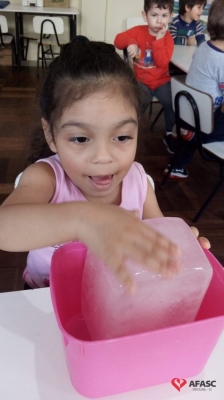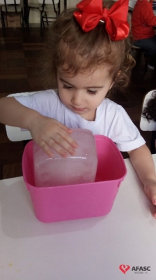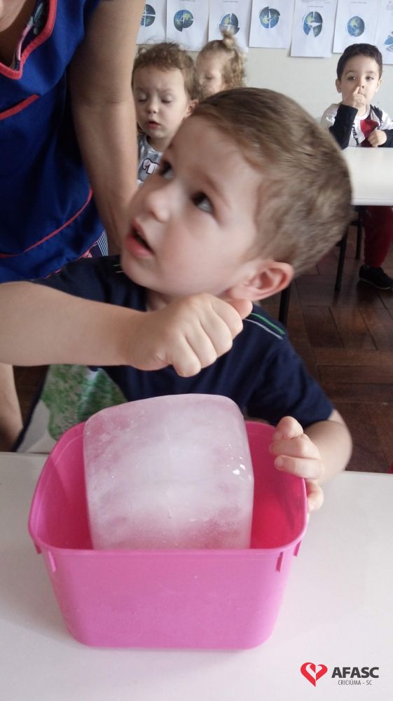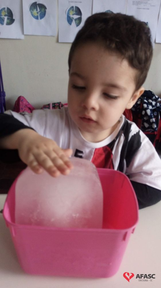 A água é um recurso natural indispensável e finito, por isso é importante que as pessoas façam seu uso de forma consciente. Para aprofundar o conhecimento das crianças sobre o tema e mostrar os diferentes estados físicos da água, as educadoras do Grupo III C do Centro de Educação Infantil (CEI) da Associação Feminina de Assistência Social de Criciúma (Afasc) Professor Lapagesse, Tatiani Pessoa e Karina Rodrigues, desenvolveram com as crianças a atividade “Conhecendo os estados da água (sólido, líquido e gasoso) e também como utilizá-la de maneira consciente”.