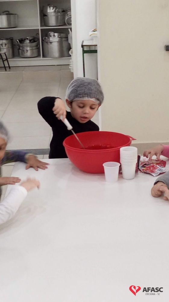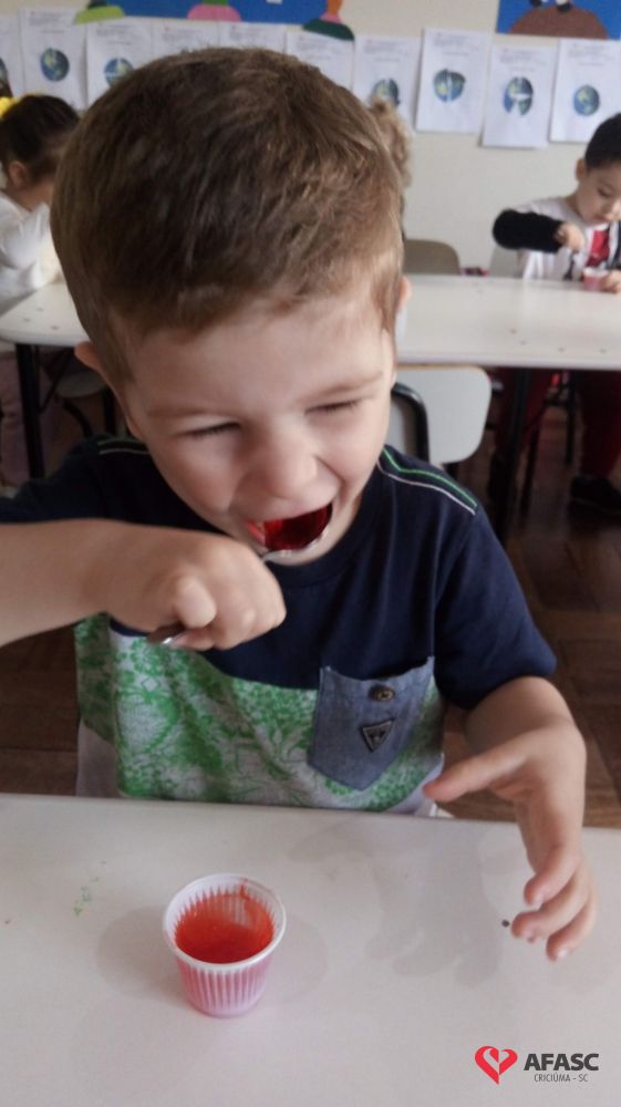 Para entender melhor sobre os estados físicos da água, crianças e educadoras realizaram experimentos práticos como: gelatina (líquido), gelo e degustação de gelatina (sólido) e tomaram chá de camomila (gasoso); que potencializaram o aprendizado.
