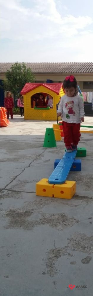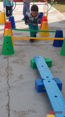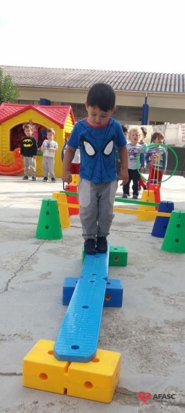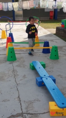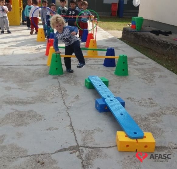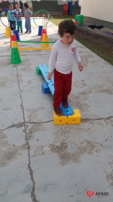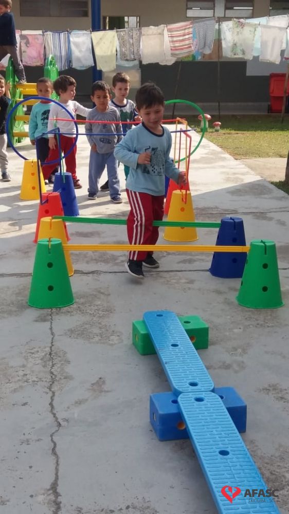 Para realização do exercício, a educadora criou um circuito onde as crianças se movimentaram, experimentaram e vivenciaram novos movimentos, obtendo assim maior conhecimento das suas possibilidades corporais, sociais e intelectuais.