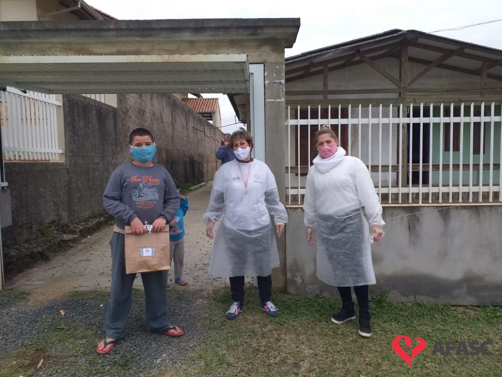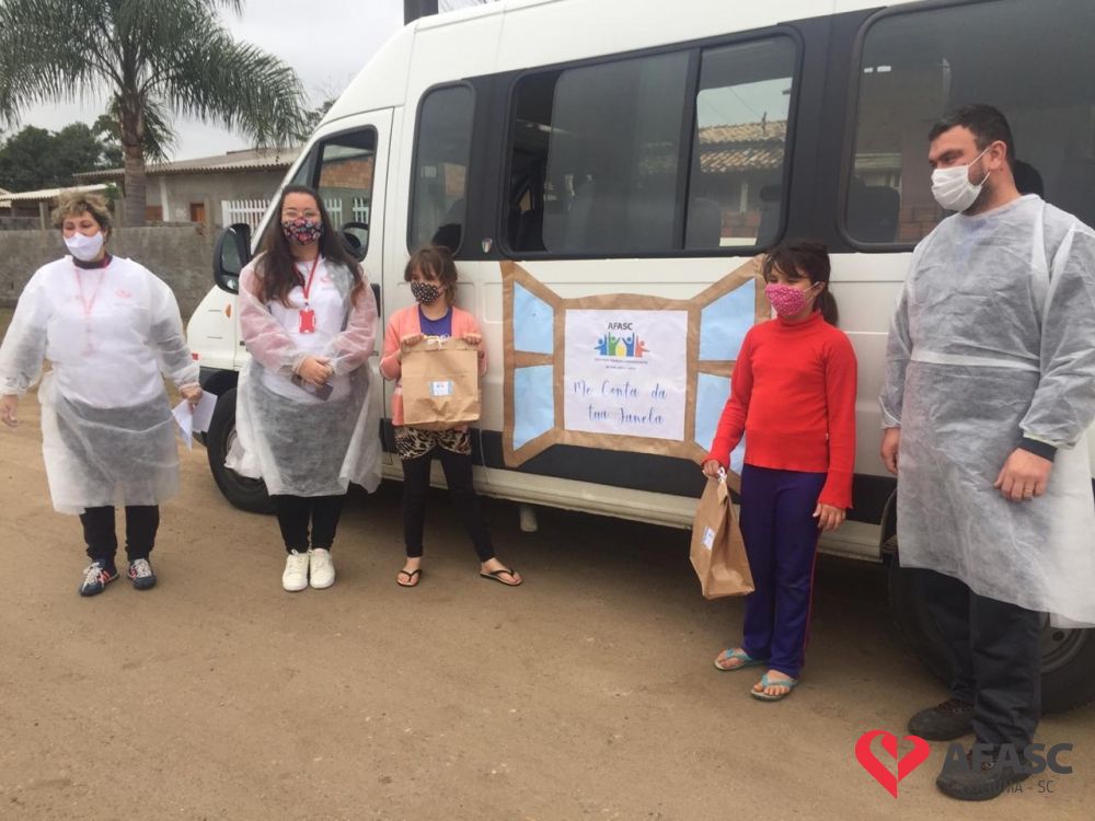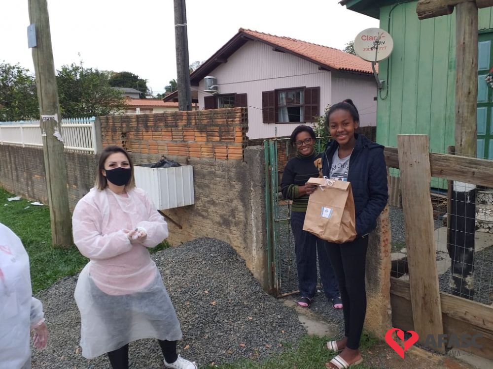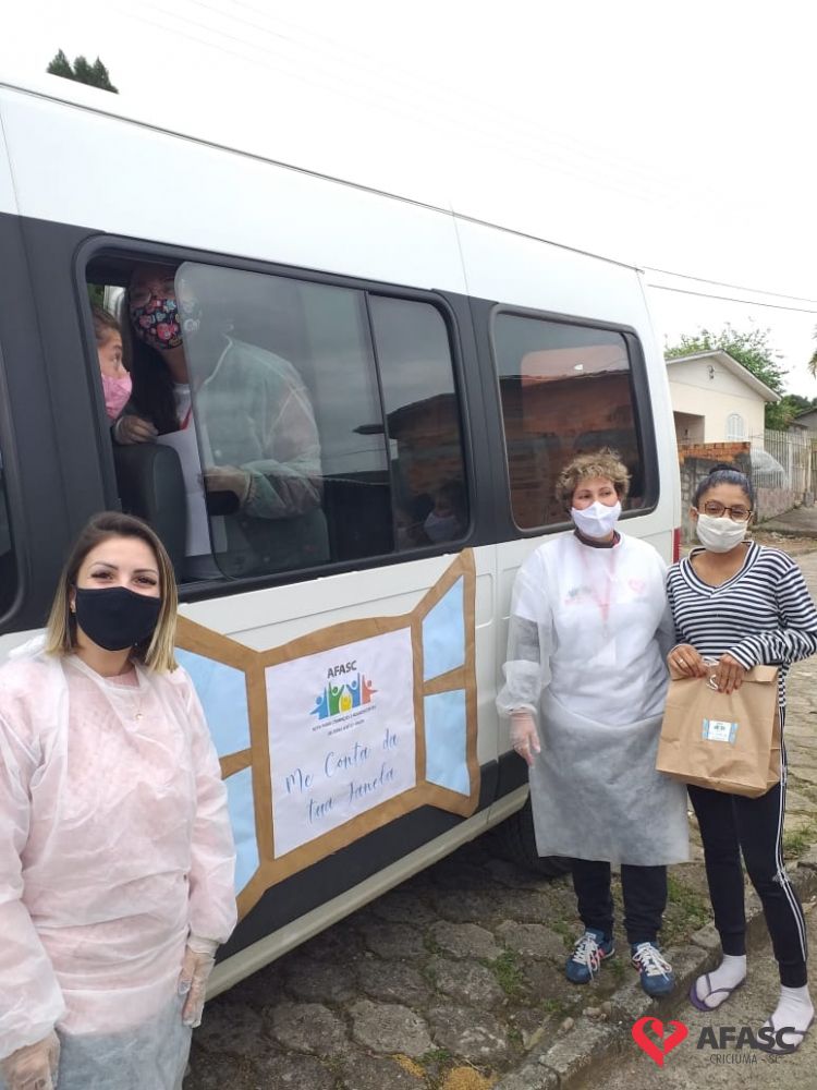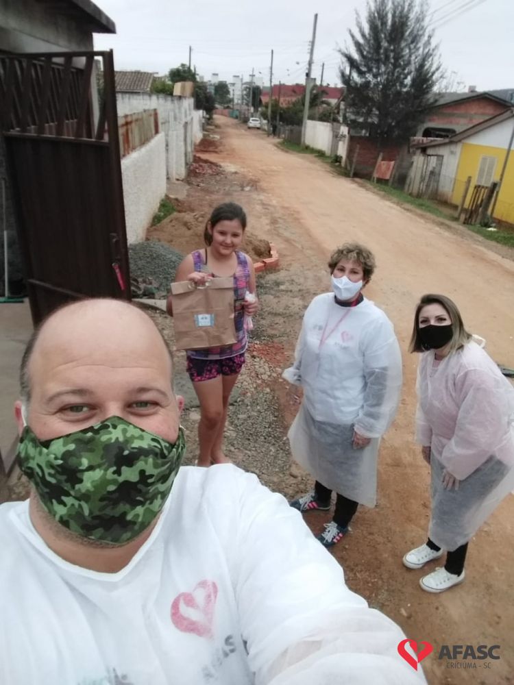 Esta quarta-feira (19), foi marcada por reencontros e muita alegria. Isso porque a equipe do Serviço de Convivência da Associação Feminina de Assistência Social de Criciúma (Afasc) que atua no Centro de Referência de Assistência Social (CRAS) Cristo Redentor, realizaram mais uma ação do projeto “Me conta da tua janela”. Os profissionais passaram o dia percorrendo a casa de crianças e adolescentes que participam das oficinas do serviço. Para levar um pouco mais de carinho e saber como as famílias estão nesse momento de isolamento social devido ao COVID-19, a equipe entregou kits que continha bolos de milho e chocolate, entre outras guloseimas.