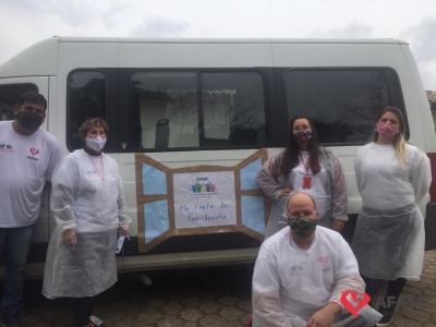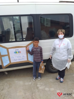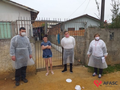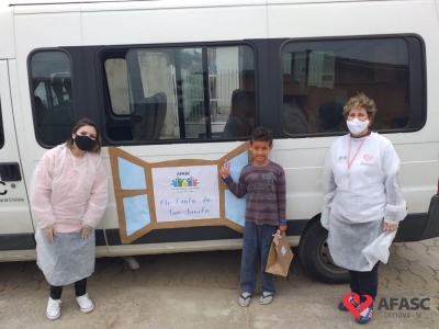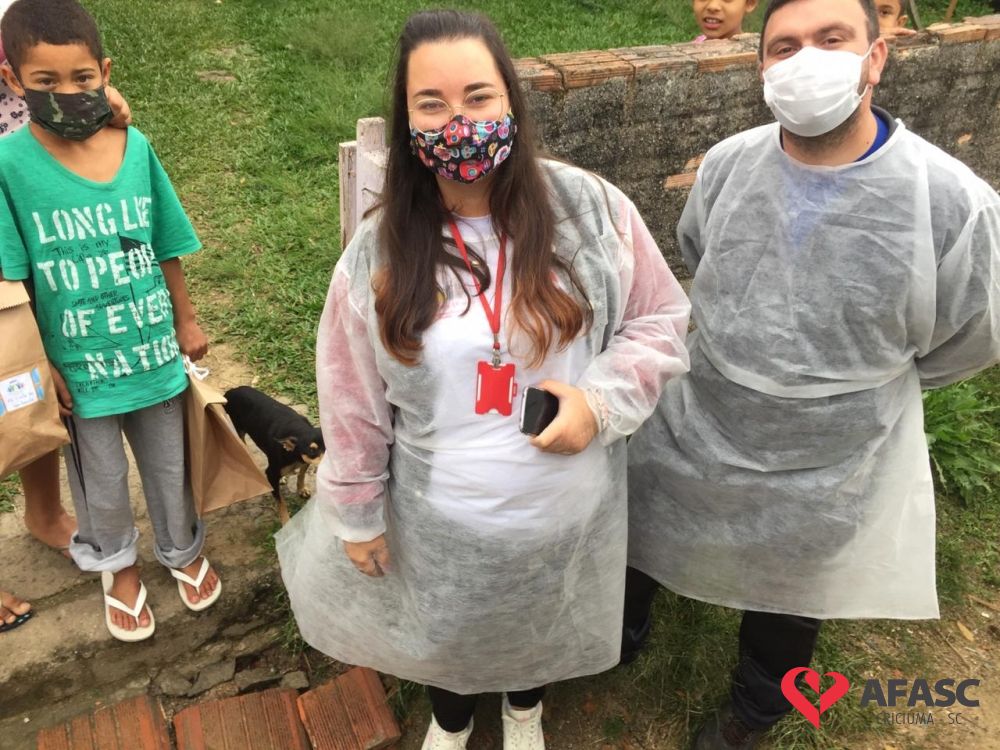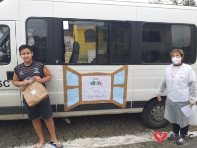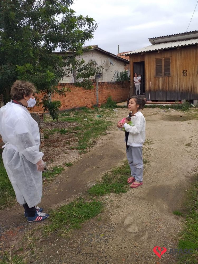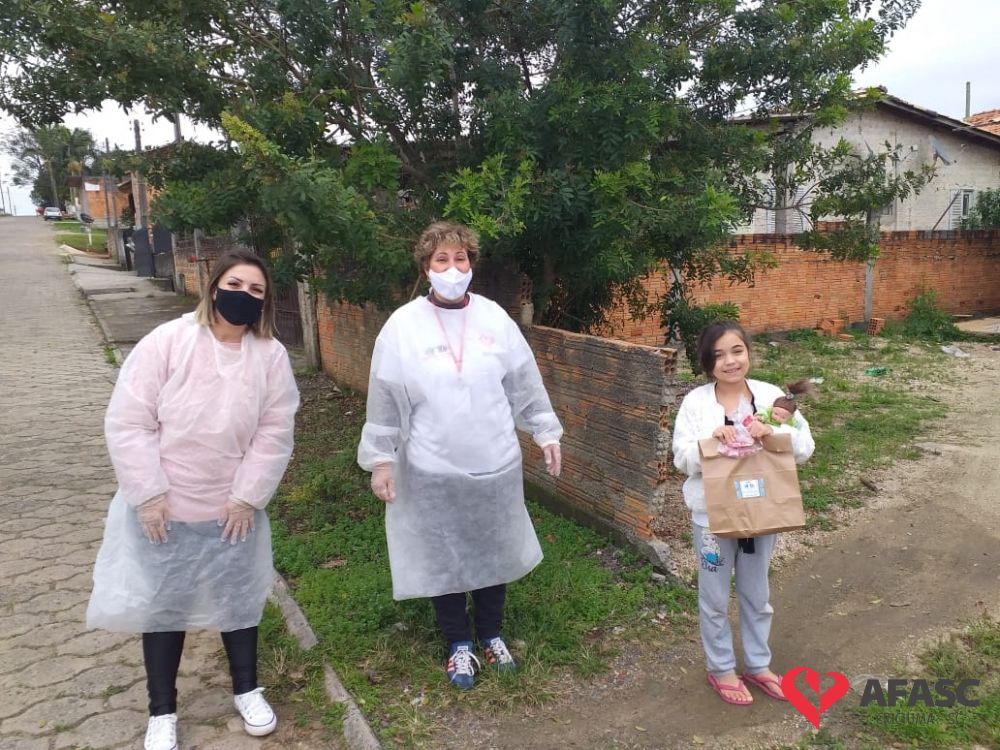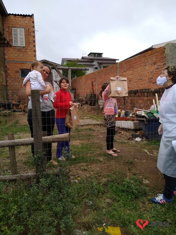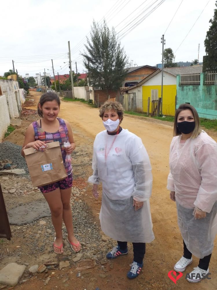 Esta quarta-feira (19), foi marcada por reencontros e muita alegria. Isso porque a equipe do Serviço de Convivência da Associação Feminina de Assistência Social de Criciúma (Afasc) que atua no Centro de Referência de Assistência Social (CRAS) Cristo Redentor, realizaram mais uma ação do projeto “Me conta da tua janela”. Os profissionais passaram o dia percorrendo a casa de crianças e adolescentes que participam das oficinas do serviço. Para levar um pouco mais de carinho e saber como as famílias estão nesse momento de isolamento social devido ao COVID-19, a equipe entregou kits que continha bolos de milho e chocolate, entre outras guloseimas.