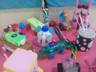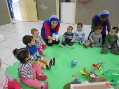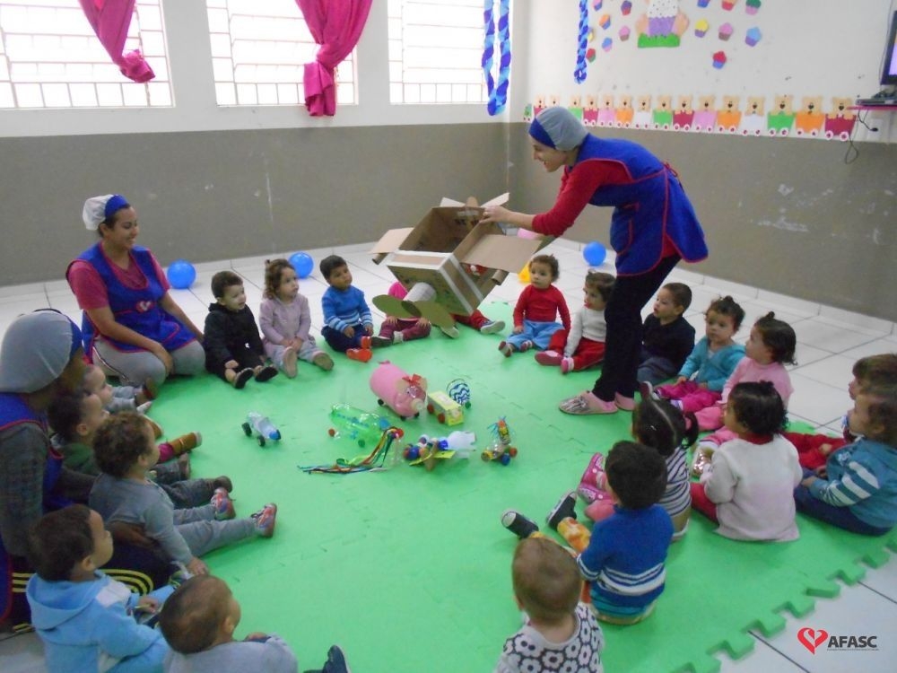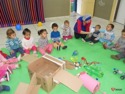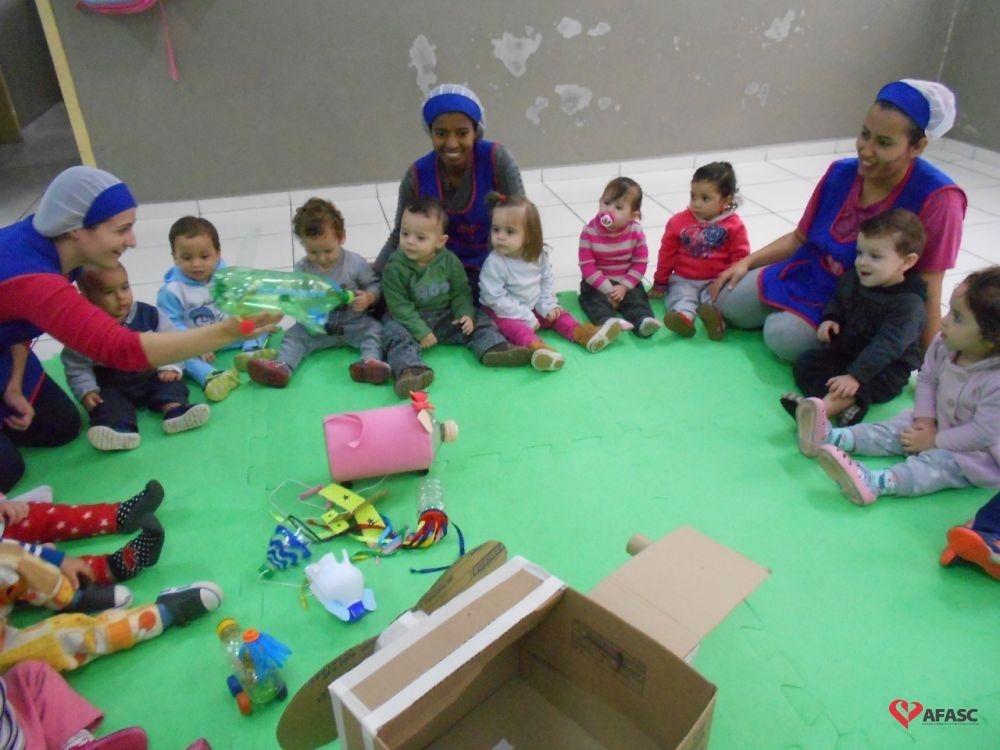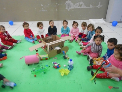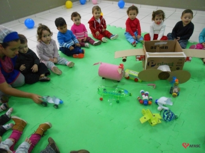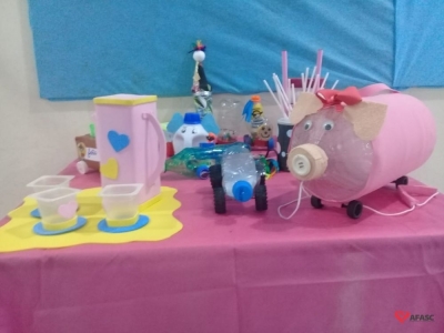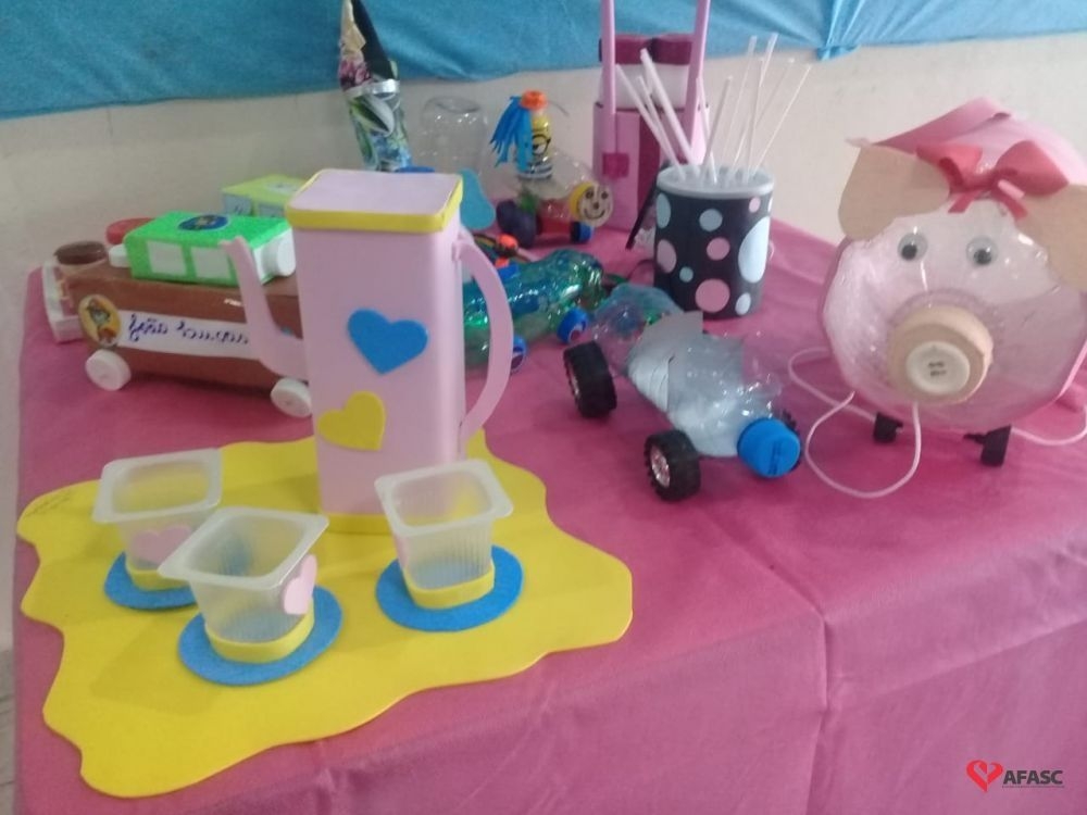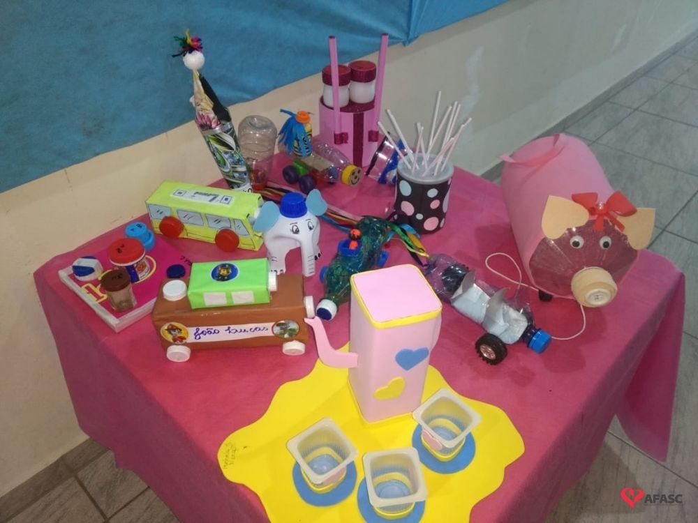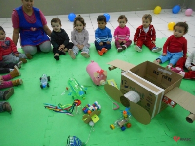 Famílias do CEI Afasc São José confeccionam brinquedos utilizando materiais recicláveis