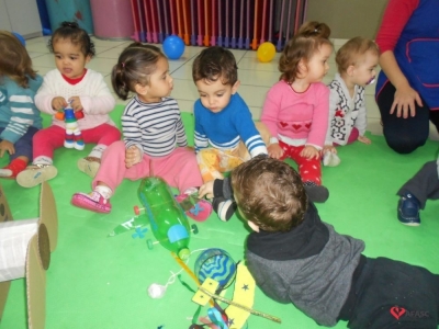 Com o intuito de trazer novas aprendizagens par o Grupo 2 do Centro de Educação Infantil (CEI) São José, as educadoras, Débora Cardoso, Larissa Holz e Suzana Hespanhol, realizaram a atividade “confecção de brinquedos com recicláveis”. O exercício faz parte do projeto macro “Cuidando do Nosso Planeta”, e contou com a ajuda das famílias, que produziram os brinquedos junto com as crianças.