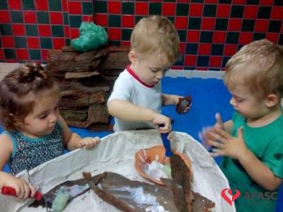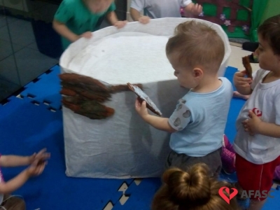 Famílias do Grupo Misto I e II do CEI Afasc Umberto Cesa confeccionam a Arca de Noé