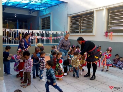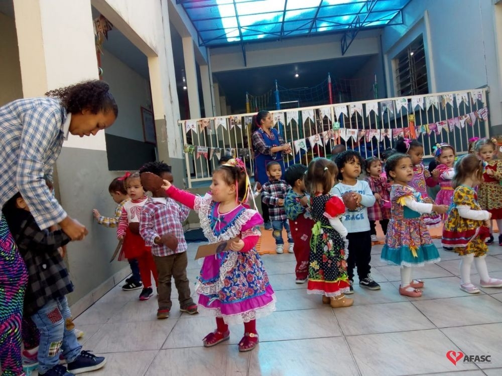 Hoje foi dia de Festa Junina interna no Centro de Educação Infantil (CEI) da Associação Feminina de Assistência Social de Criciúma (Afasc) Deputado Ulysses Guimarães. Brincadeiras, danças e lanche coletivo fizeram a alegria das crianças de todos os Grupos atendidos na creche.
