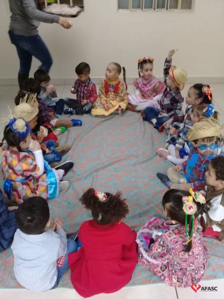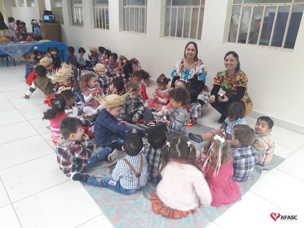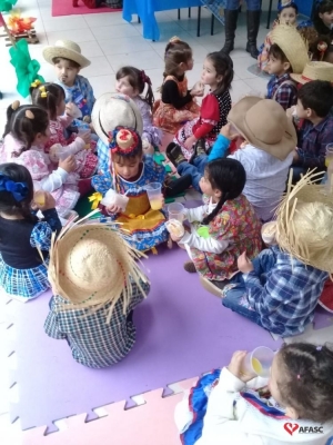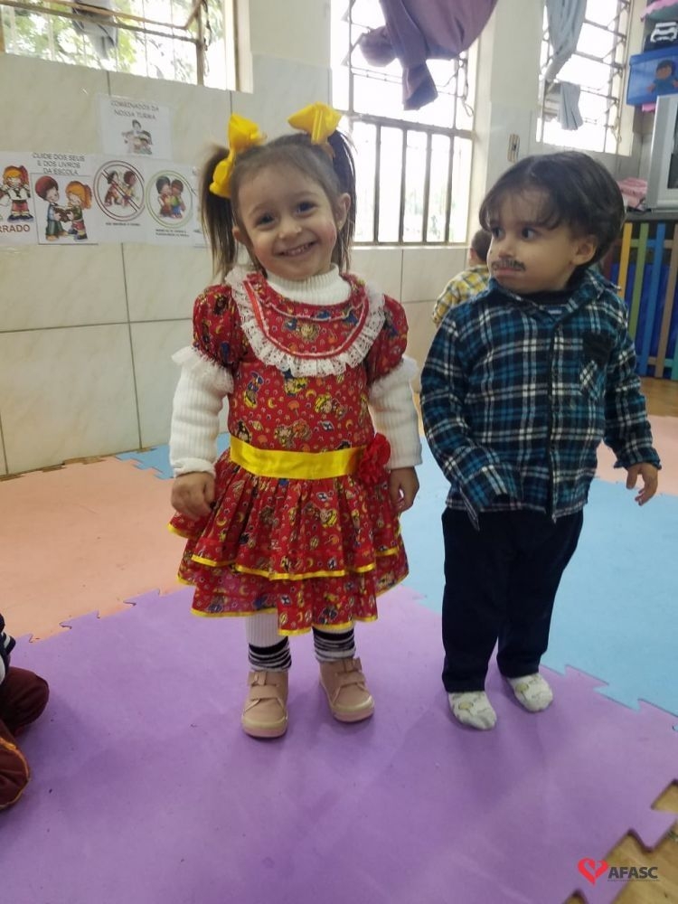 Nessa quarta-feira (26), foi dia de Festa Junina interna no Centro de Educação Infantil (CEI) da Associação Feminina de Assistência Social de Criciúma (Afasc) Irmã Emília. Brincadeiras, danças e lanche coletivo fizeram a alegria das crianças de todos os Grupos atendidos na creche.