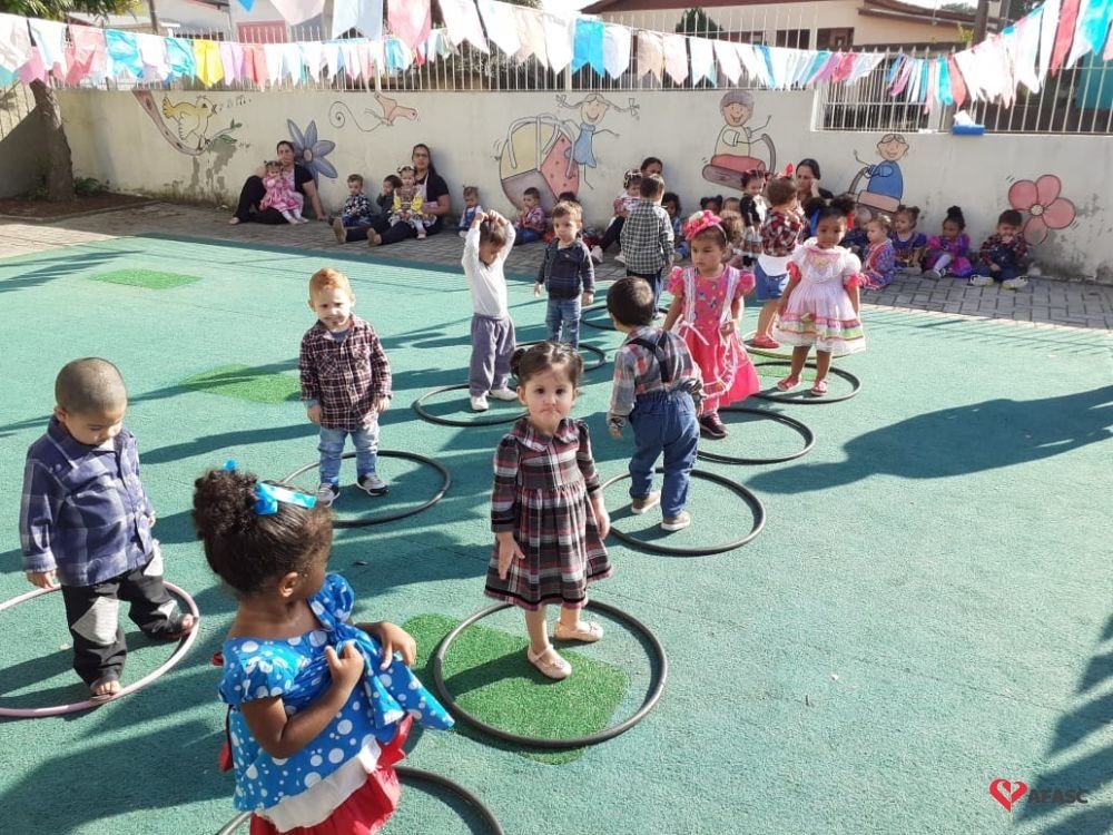 Hoje foi dia de Festa Junina interna no Centro de Educação Infantil (CEI) da Associação Feminina de Assistência Social de Criciúma (Afasc) Pingo de Gente. Brincadeiras, danças e lanche coletivo fizeram a alegria das crianças de todos os Grupos atendidos na creche.