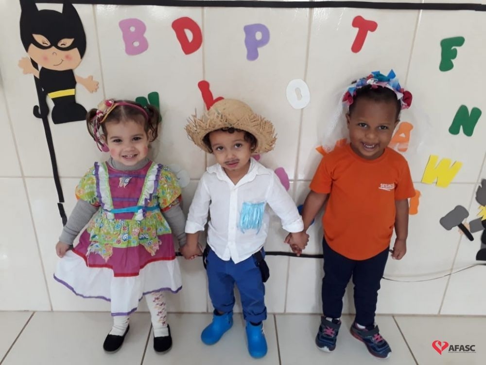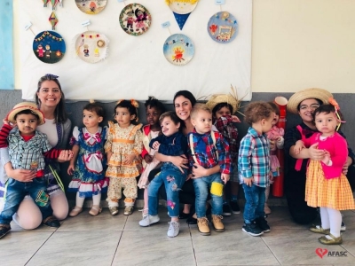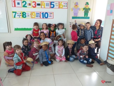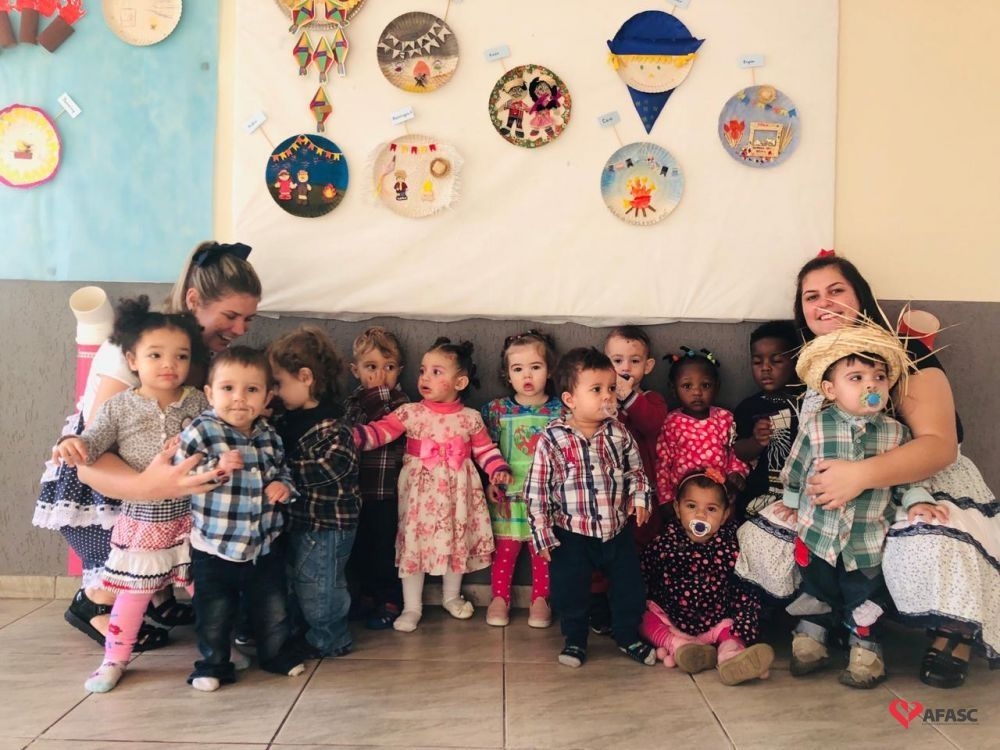 Hoje foi dia de Festa Junina interna no Centro de Educação Infantil (CEI) da Associação Feminina de Assistência Social de Criciúma (Afasc) Santo Antonio. Brincadeiras, danças e lanche coletivo fizeram a alegria das crianças de todos os Grupos atendidos na creche.