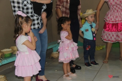 Mesmo com o calor da tarde de sábado (29), as famílias das crianças atendidas no Centro de Educação Infantil (CEI) da Associação Feminina de Assistência Social de Criciúma (Afasc) São José, Lotaram o centro comunitária da comunidade para prestigiar a Festa Junina organizada pela equipe do educandário. Piscina de bolinha, cama elástica, pescaria e diversas apresentações tornaram a festa ainda mais animada. O evento contou com a participação da vice-dama do município Robinalva Ferreira, da coordenadora do Departamento de Educação Infantil (DEI) Andreza Dagostim e da secretária municipal de Educação, Roseli de Lucca.