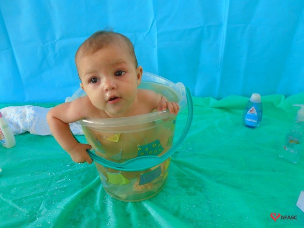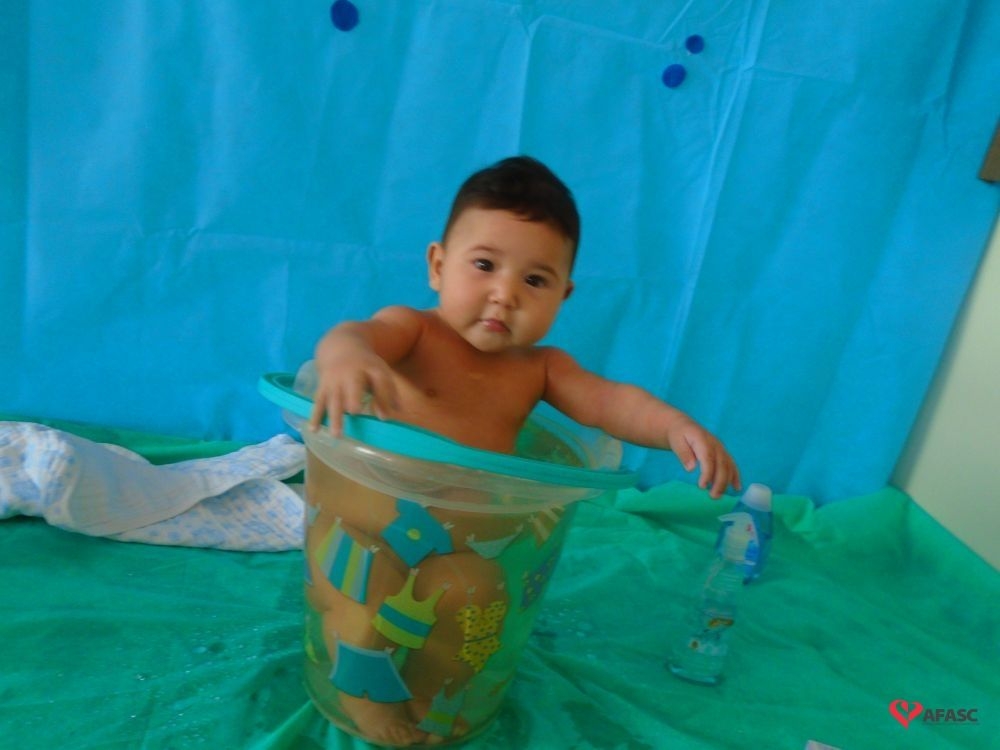 O banho de ofurô é uma técnica holandesa e utilizada por obstetras e enfermeiras em maternidades, para transmitir aos bebês a mesma sensação do período em que esteve na barriga de sua mãe. Pensando em deixar os bebês do Grupo I mais relaxados, a professora Gabriela Zeferino, do Centro de Educação Infantil (CEI) da Associação Feminina de Assistência Social de Criciúma (Afasc) Professor Jairo Luiz Thomazi realizou a atividade “Ofurô: Você vai se arrepender se não fizer isso”.