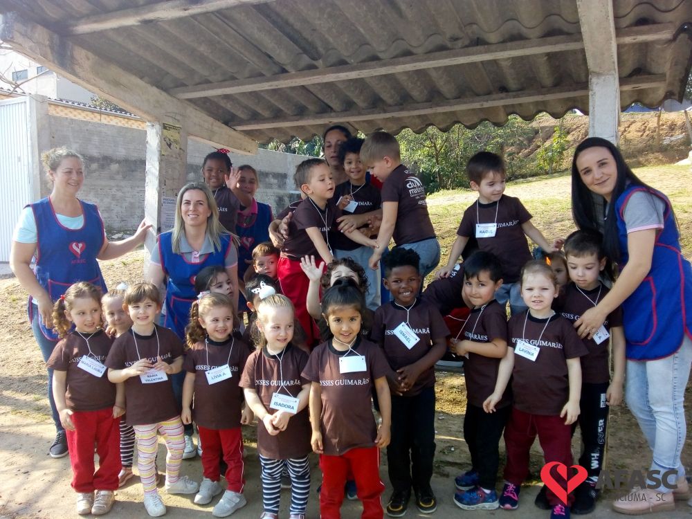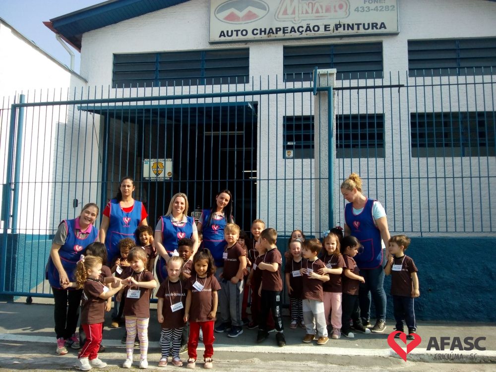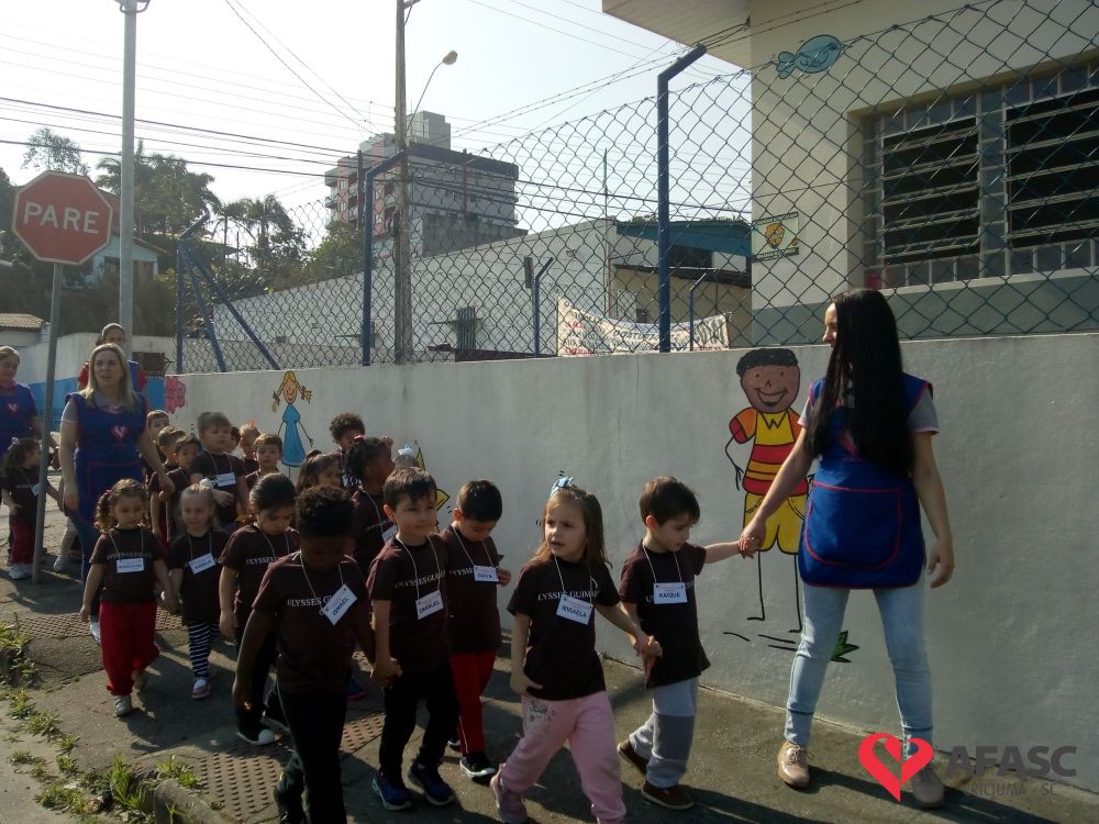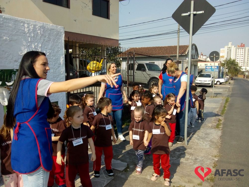 Para enriquecer e ampliar o repertório cultural e a autonomia das crianças oportunizar que elas vivenciem em diferentes espaços, mantendo o contato com a natureza e possam compartilhar experiências de passeio e exploração de ambientes juntamente com seus colegas de classe. Pensando desta forma, as professoras do Grupo IV A do Centro de Educação Infantil da Associação Feminina de Assistência Social de Criciúma (Afasc) Deputado Ulysses Guimarães, Saionara Machado e Jéssica Dias, levaram seus pequenos para passear pelo bairro Operária Nova, comunidade onde está instalada a creche.