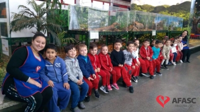 As crianças do Centro de Educação Infantil (CEII da Associação Feminina de Assistência Social de Criciúma (Afasc) Irmã Emília, tem se dedicado ao estudo sobre animais, através do Projeto Macro “Os animais do Mundinho”. Com o intuito de socializar os projetos educacionais fora dos muros da creche, as professoras Andreza Gerônimo e Letícia Demétrio, levaram as crianças do Grupo IV C do CEI para conhecer os Museus de Zoologia e da Infância, instalados na Universidade do Extremo Sul Catarinense (Unesc).