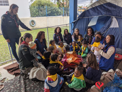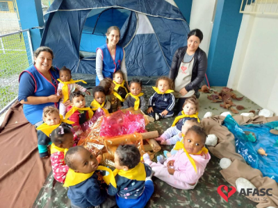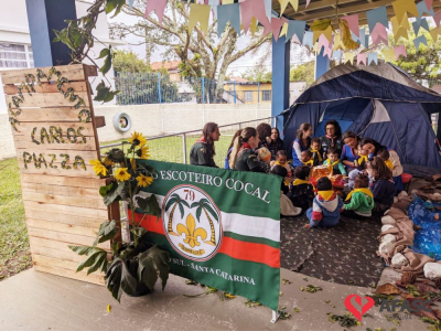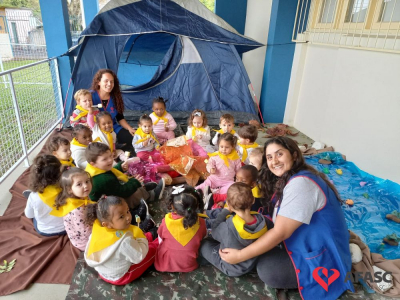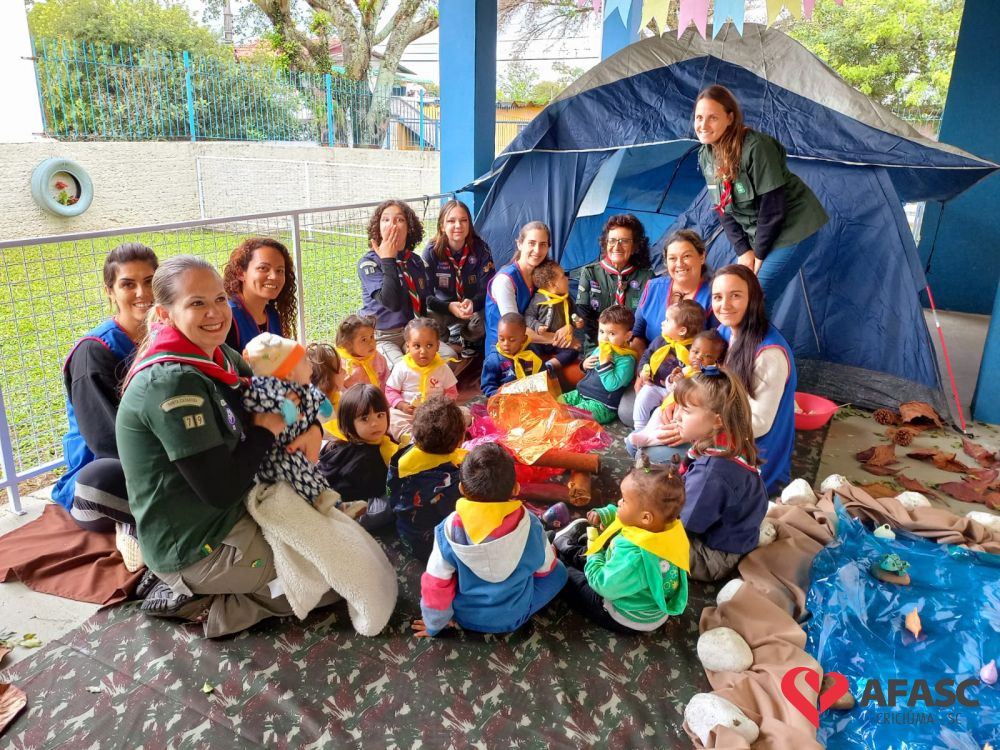 Um momento lúdico e cheio de exploração. Assim foi a atividade de musicalização em volta da fogueira, oportunizada pelas professoras dos Grupos 1 e 2 do CEI Afasc Carlos Piazza com apoio do Grupo de Escoteiros de Cocal do Sul. Educadoras e escoteiros organizaram um acampamento, onde apresentaram de forma lúdica os quatro elementos da natureza.