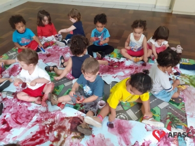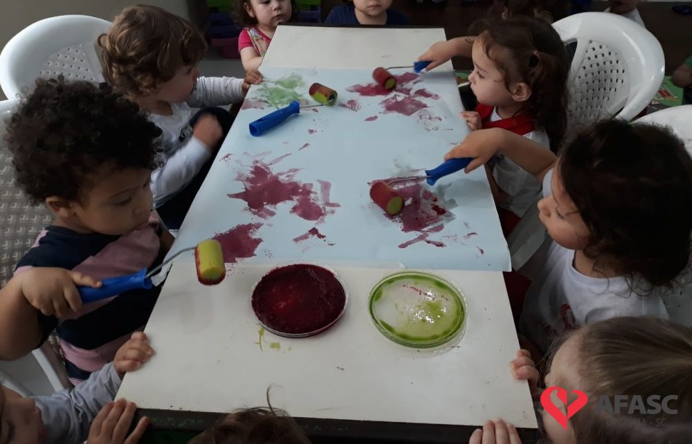As crianças dos Grupos II B e C do Centro de Educação Infantil (CEI) da Associação Feminina de Assistência Social de Criciúma (Afasc) estão vivendo um novo universo. Com a colaboração das professoras Deise de Souza, Andreza Dutra, Adiang Fernandes, Indiamara Rodrigues e Bruna de Bona, as crianças têm adquirido novos conhecimentos por meio do projeto “Explorando cores e espaço”, que tem trazido novas formas de lidar com o mundo, ao mesmo tempo em que constrói significados para as ações e evidencias.