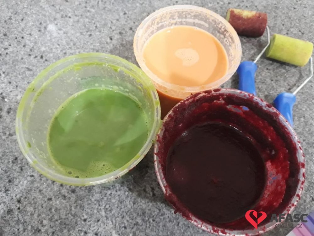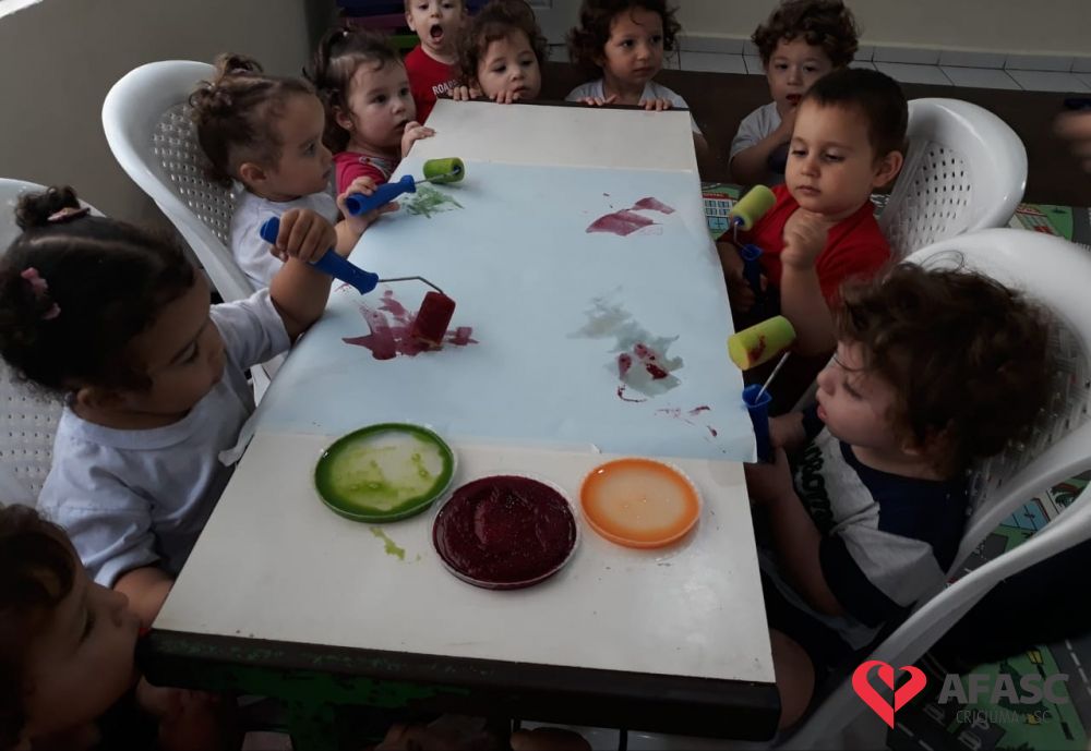 Como as crianças sempre são atraídas por objetos coloridos, as educadoras confeccionaram tintas utilizando beterraba, couve e cenoura, produzindo assim tinta não tóxico, trazendo muita diversão para os pequenos.