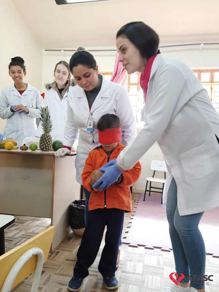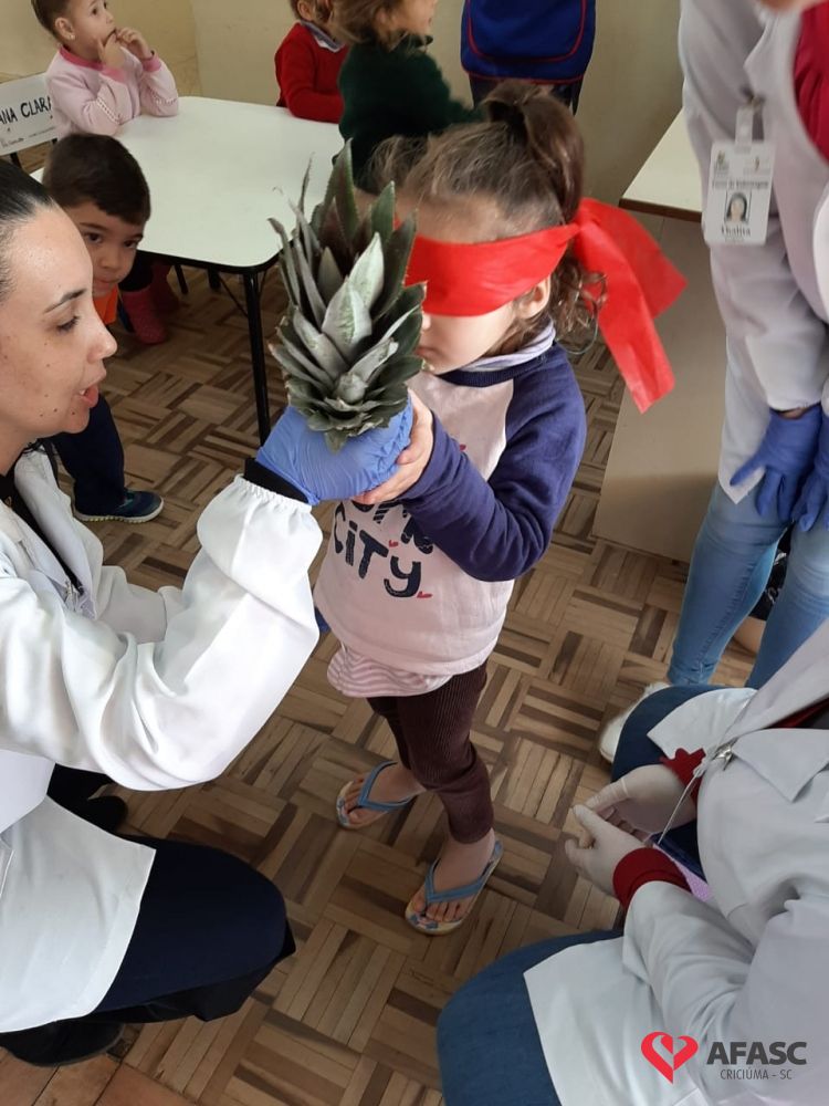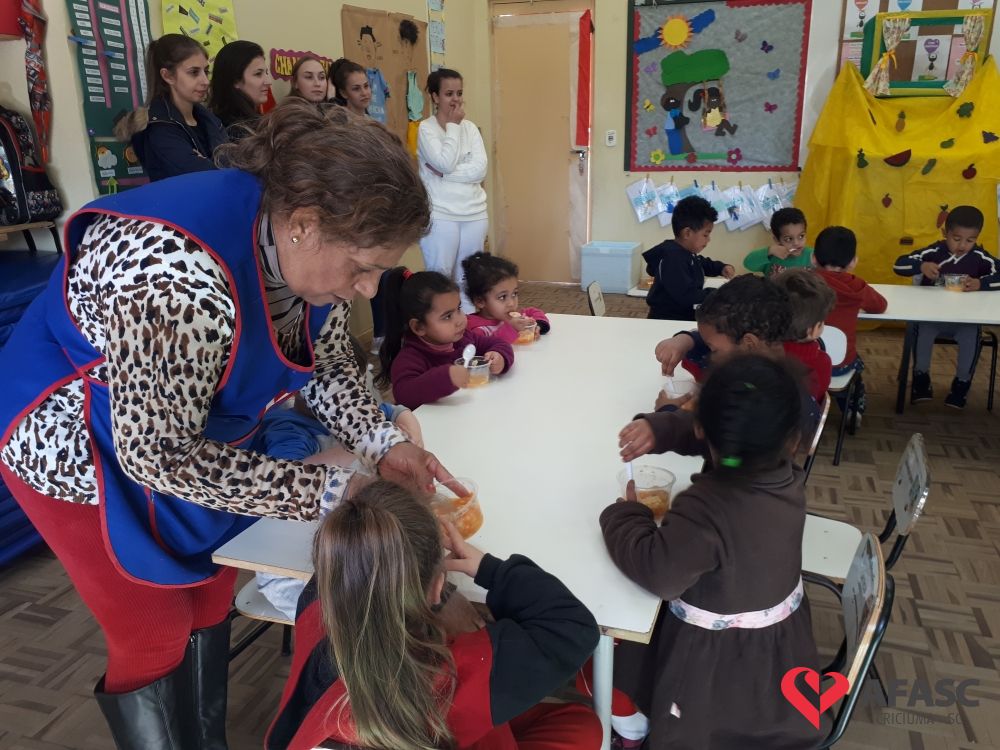 As crianças do Grupo IV B e C do Centro de Educação Infantil (CEI) da Associação Feminina de Assistência Social de Criciúma (Afasc) Beato Aníbal Maria di Frância estão recebendo orientações sobre alimentação saudável por meio de atividades educativas e lúdicas com acadêmicos da 7ª fase do Curso de Enfermagem da Universidade do Extremo Sul Catarinense (Unesc). O trabalho que está vinculado a Unidade Básica de Saúde (UBS) e está sob a supervisão da professora Zoraide Rocha, faz parte do projeto “Integralidade no processo de cuidar em enfermagem na saúde da criança e adolescente”.