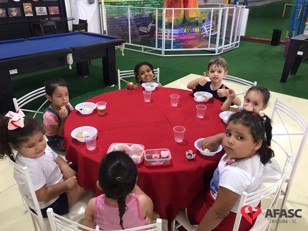 Um momento mágico, cheio de alegria e com muitos brinquedos e brincadeiras foi disponibilizado para as crianças que frequentam os Grupos IV A, B e C do Centro de Educação Infantil (CEI) da Associação Feminina de Assistência Social de Criciúma (Afasc) Maria de Assis Góes, na última quinta-feira (5), na Casa Mix. A atividade foi realizada com os pequenos, que estão em seu último ano educacional na unidade da Afasc.