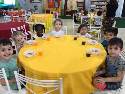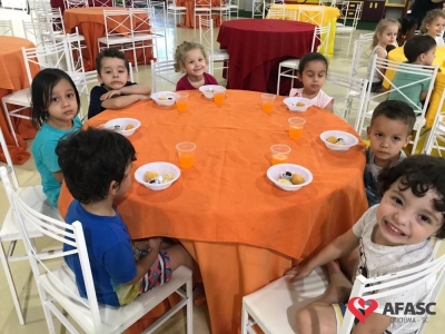 Além de toda diversão, que foi garantida durante a estadia das crianças do espaço, elas receberam um lanche especial.