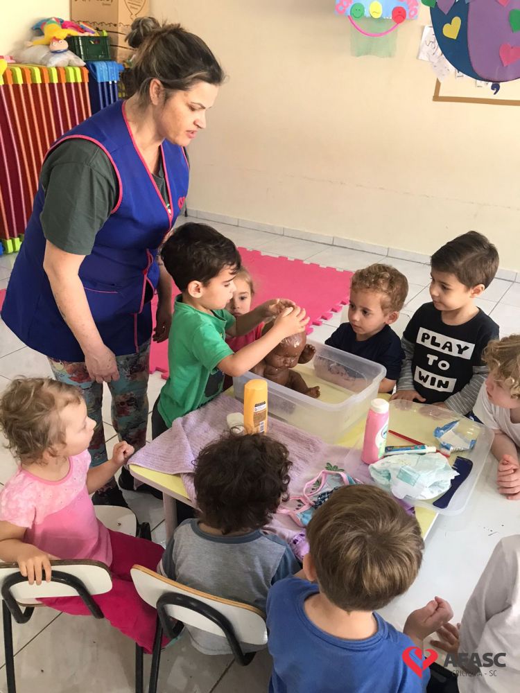 Segundo a professora, Ângela de Barros, por meio desse planejamento, as crianças aprenderam brincando sobre a construção de hábitos saudáveis de vida e cuidados relacionados com o corpo. “As crianças precisam conhecer seu corpo e aprender a tomar os cuidados necessários para manter uma boa higiene. Usamos escova de dente, creme dental, pente, sabonete, shampoo, toalhas, fraldas, perfumes, tudo para que eles vejam a importância desses produtos durante a higienização”, comenta.