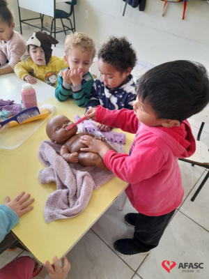 Professores e famílias, deve estimular as crianças a conhecerem seu próprio corpo num todo e através do mesmo explorar os cinco sentidos de forma diversificada, para desenvolver a inteligência num ambiente rico e desafiador. Observando a importância de as crianças aprenderem e aprofundarem mais sobre o tema, o Grupo 3 A do CEI Afasc Zilá Terezinha Pugiski Linemburger desenvolveu a atividade “Dar banho na boneca”.