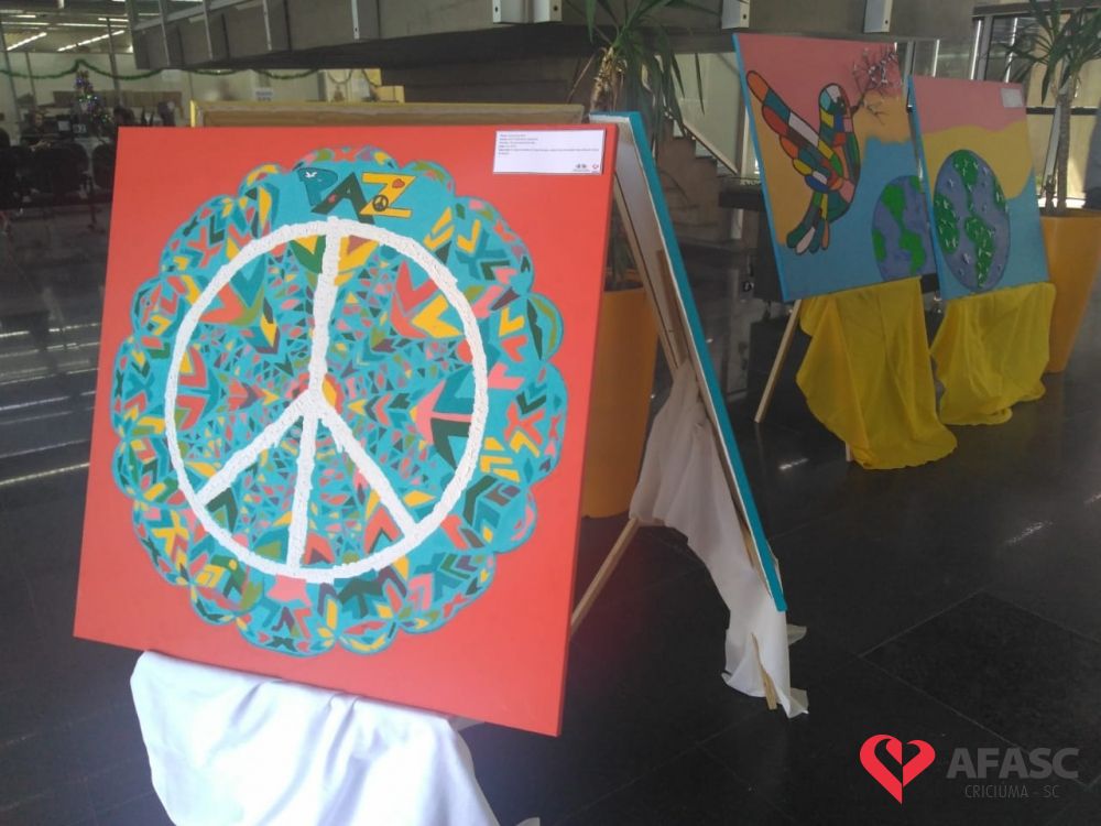 Inspirados na temática macro do Serviço de Convivência e Fortalecimento de Vínculos (SCFV) da Associação Feminina de Assistência Social de Criciúma (Afasc), “Trilhando os caminhos da paz”, crianças e adolescentes, em conjunto com facilitadores e orientadores sociais que atuam nos Centros de Referência de Assistência Social de Criciúma (CRAS), Vila Miguel, Tereza Cristina, Santa Luzia, Renascer, Cristo Redentor, Próspera e no Centro de Convivência Vida Nova, confeccionaram 14 lindos quadros, que estão em exposição no Hall da Prefeitura Municipal de Criciúma. A mostra que iniciou nessa segunda-feira (2), segue até o dia 13 de dezembro, sexta-feira.