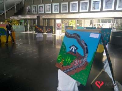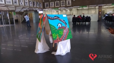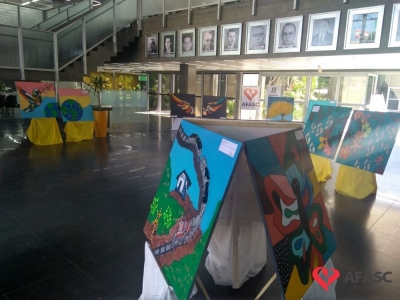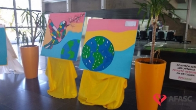 A exposição conta ainda, com uma obra de grafite realizada pelo artista, Lucas Zion, integrante da Visitantes Crew, que a produziu durante o evento “Apologia a Paz e Não ao Trabalho Infantil”, promovido através de uma parceria entre SCFV da Afasc e Secretaria Municipal de Assistência Social. A produção de cada peça exposta, foi pensada com muito carinho, buscando criar obras que representem a subjetividade de cada participante, unificando-as no coletivo.